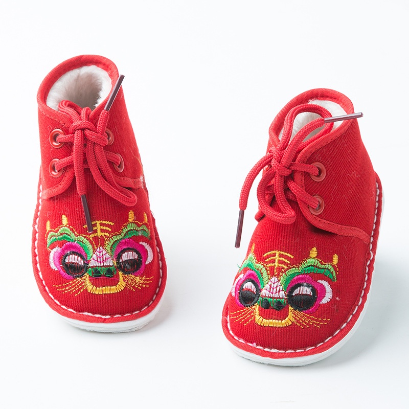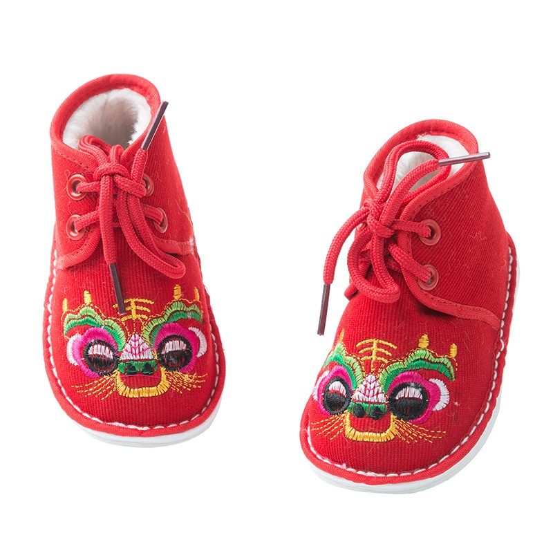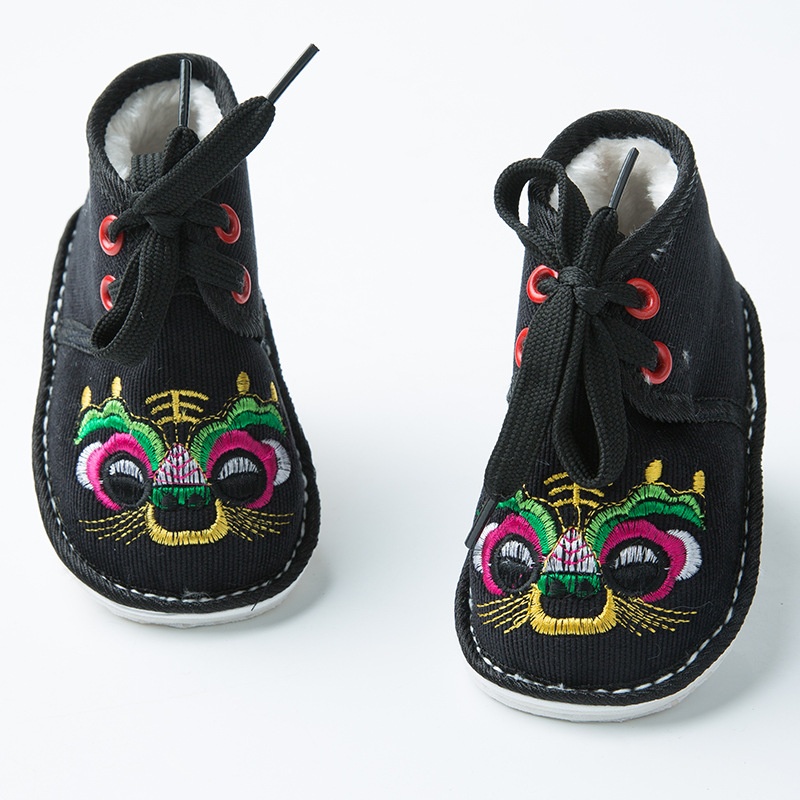 Winter1-3 Years Old Baby Boy And Girl Thousand-layer Sole Tiger Head Cotton Shoes Baby Embroidery Plus Velvet Tiger Shoes Hard Sole Cotton Shoes