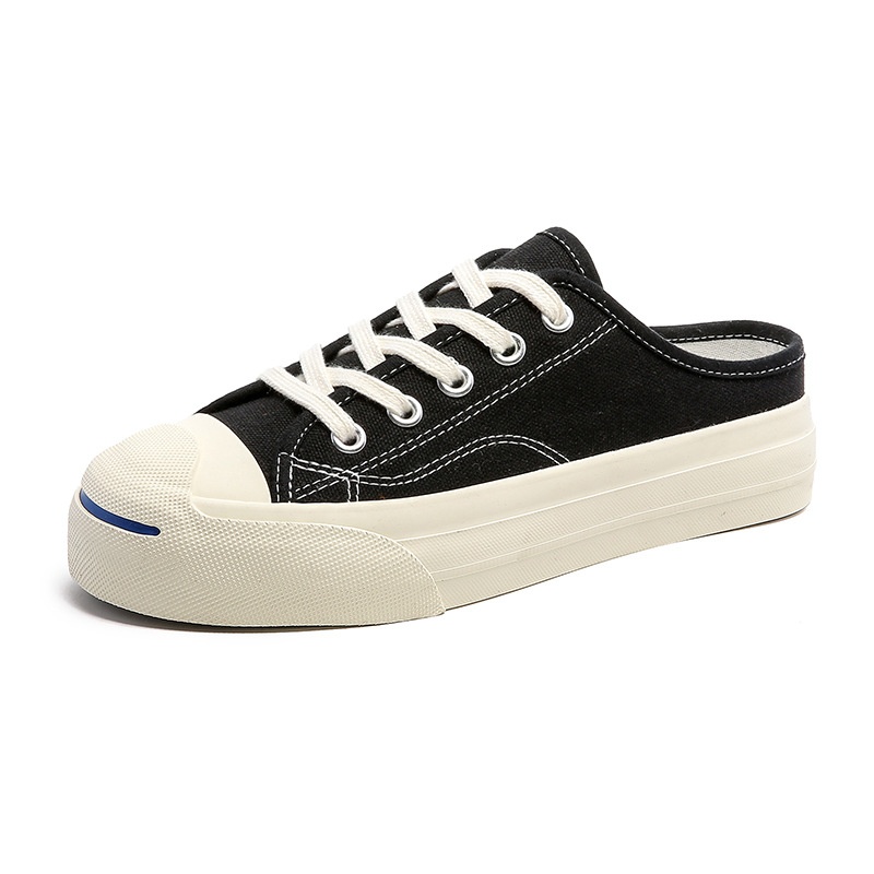 Summer Style Casual Versatile One-step Breathable White Shoes Thick Sole Two-wear Half-slip Canvas Shoes For Women
