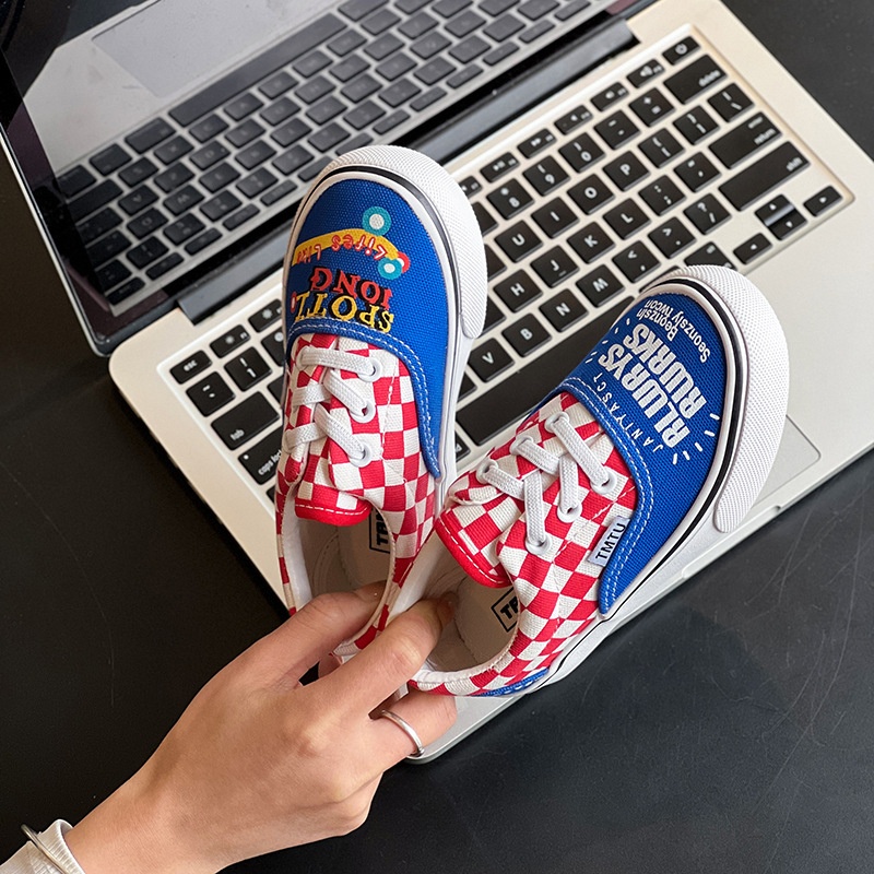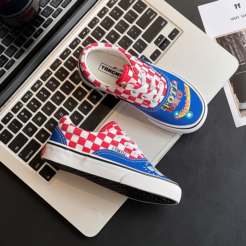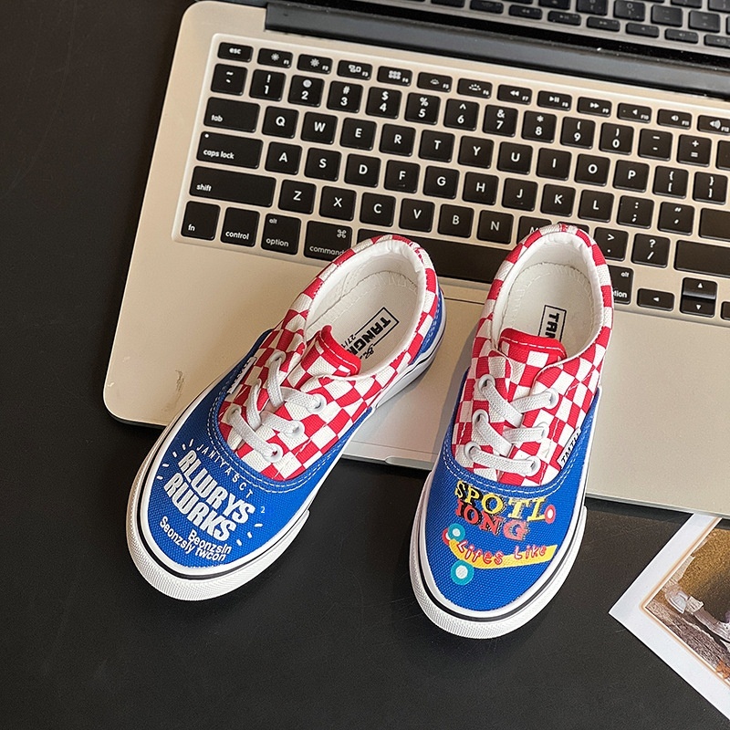 Children's Checkerboard Canvas Shoes For Girls Summer Cartoon Small,Medium And Large Children's Shoes Soft Sole Korean Version Of Mandarin Duck Sneakers