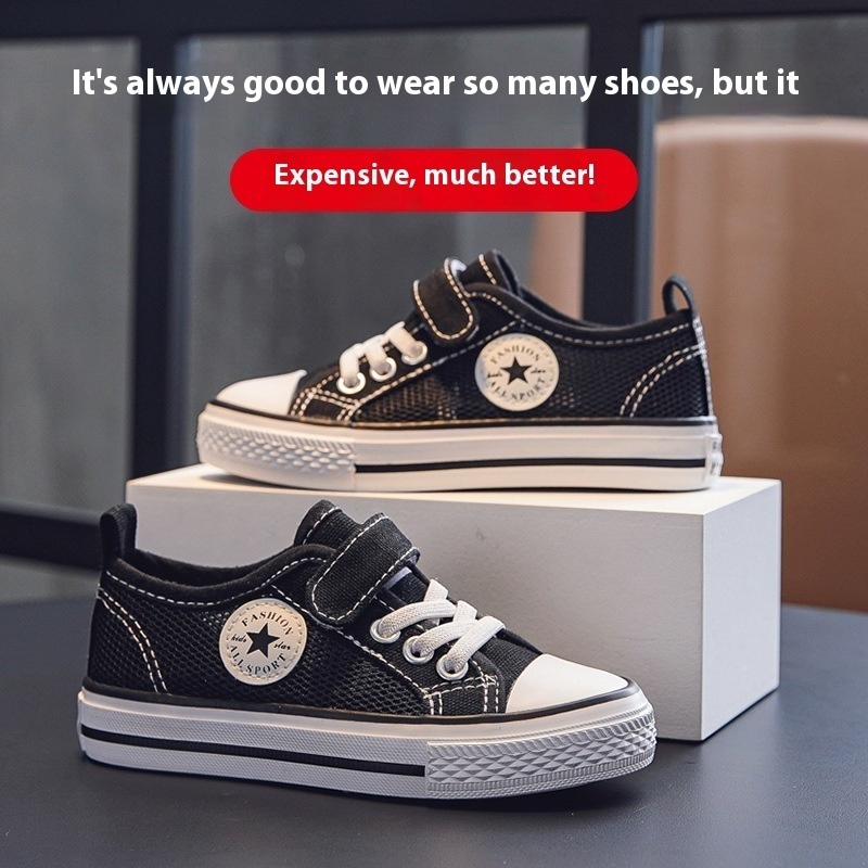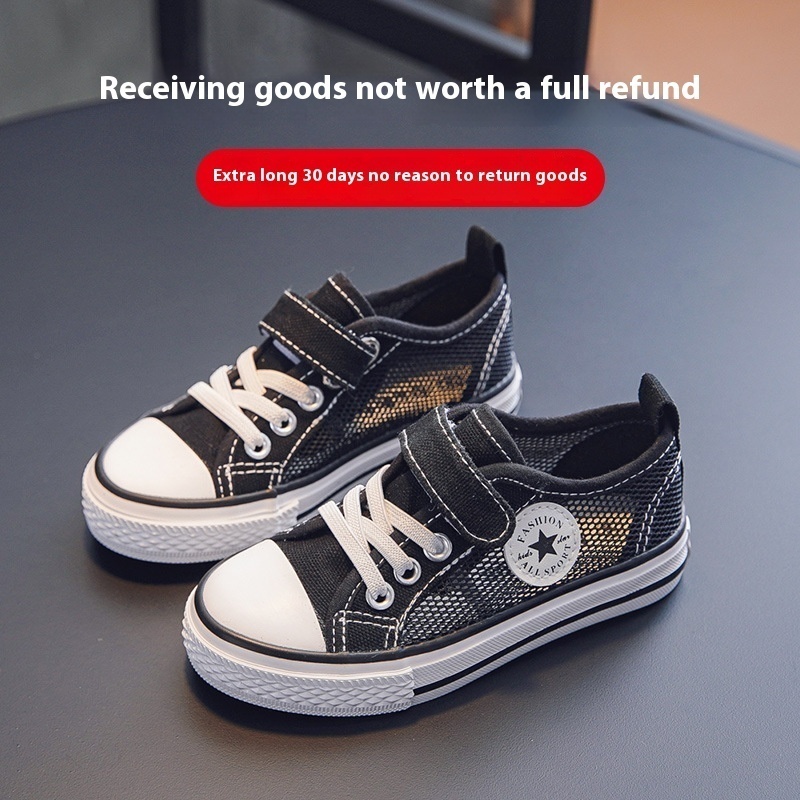 Children's Breathable Mesh Velcro Canvas Shoes Summer Boys And Girls Small,Medium And Large Children's Student Sneakers Baby Shoesy