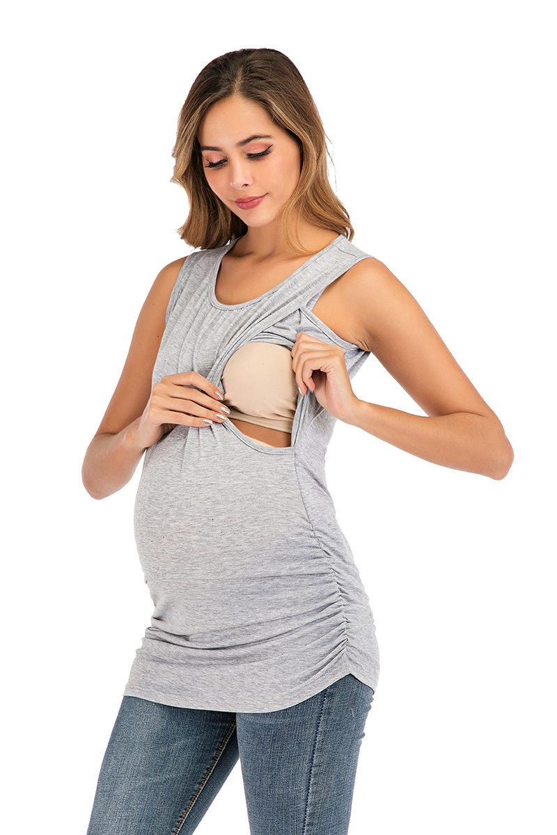 Hot Style19 European And American Round Neck Solid Color Vest Nursing Wear Maternity Wear