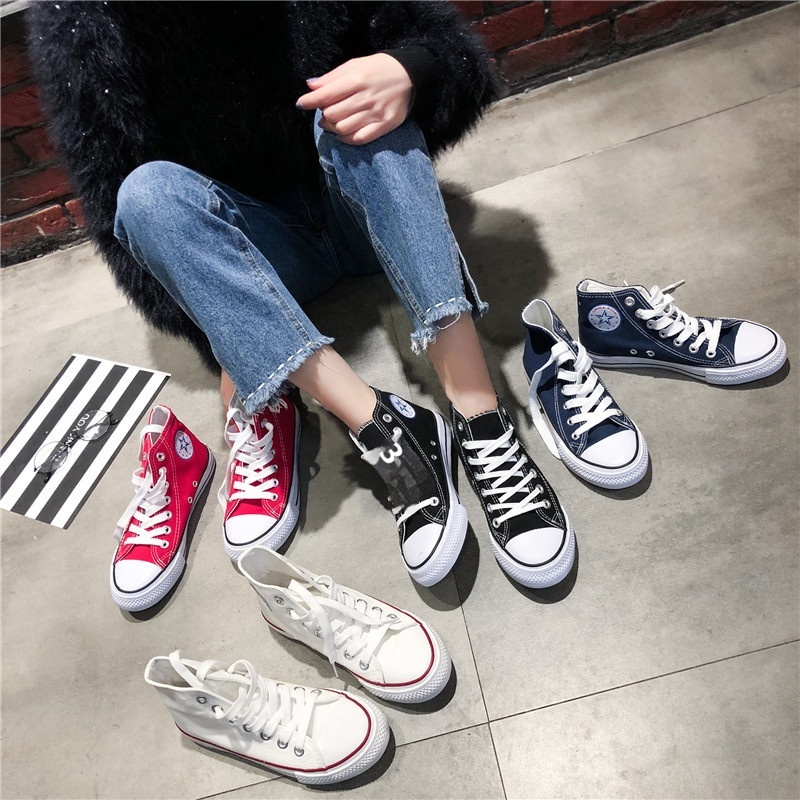 Canvas Shoes For Women Summer High And Low Top Female Student Flat Shoes Lace-up Korean Casual Shoes Breathable White Shoes