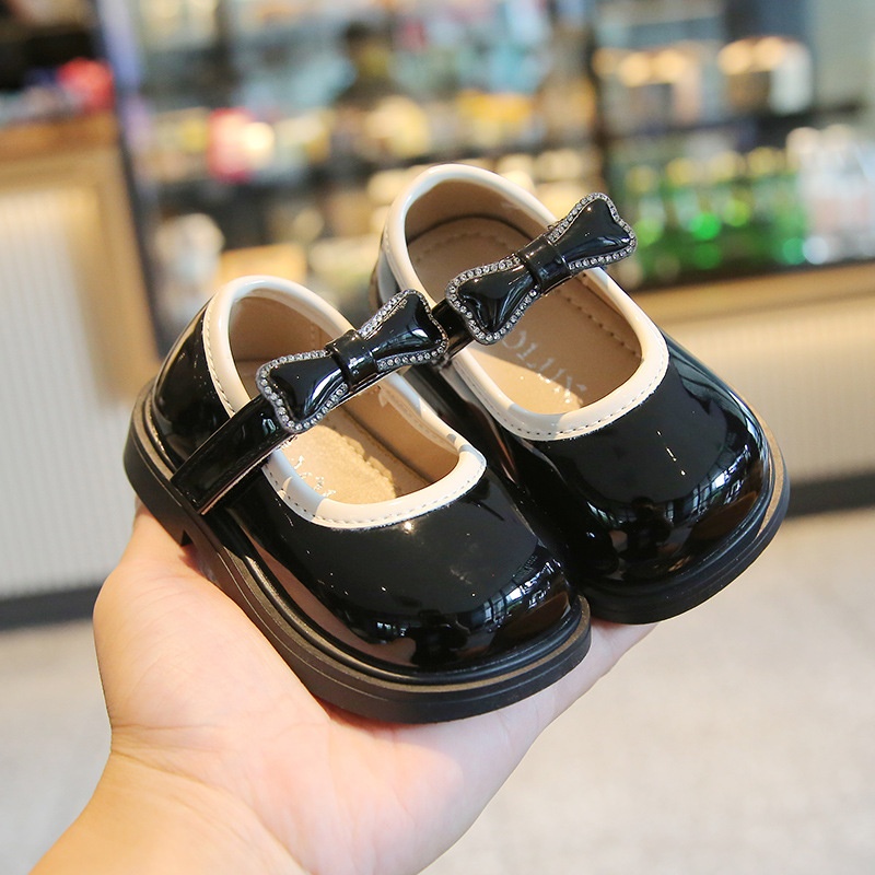 Baby Toddler Shoes Children's Shoes Spring And Autumn Bright Leather Princess Shoes Korean Version Children's Bow Leather Shoes