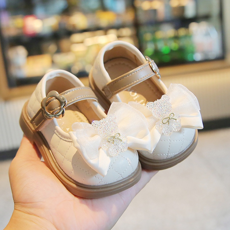 Baby Toddler Shoes Soft Sole Princess Shoes1-2 To3 Years Old Korean Version Girl Single Shoes Children's Leather Shoes Shallow Mouth Bow