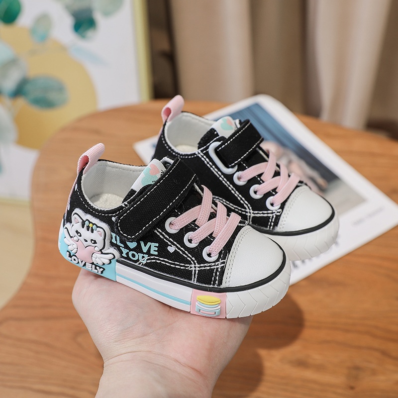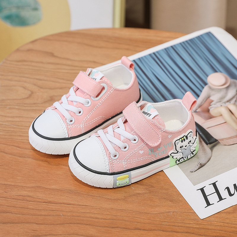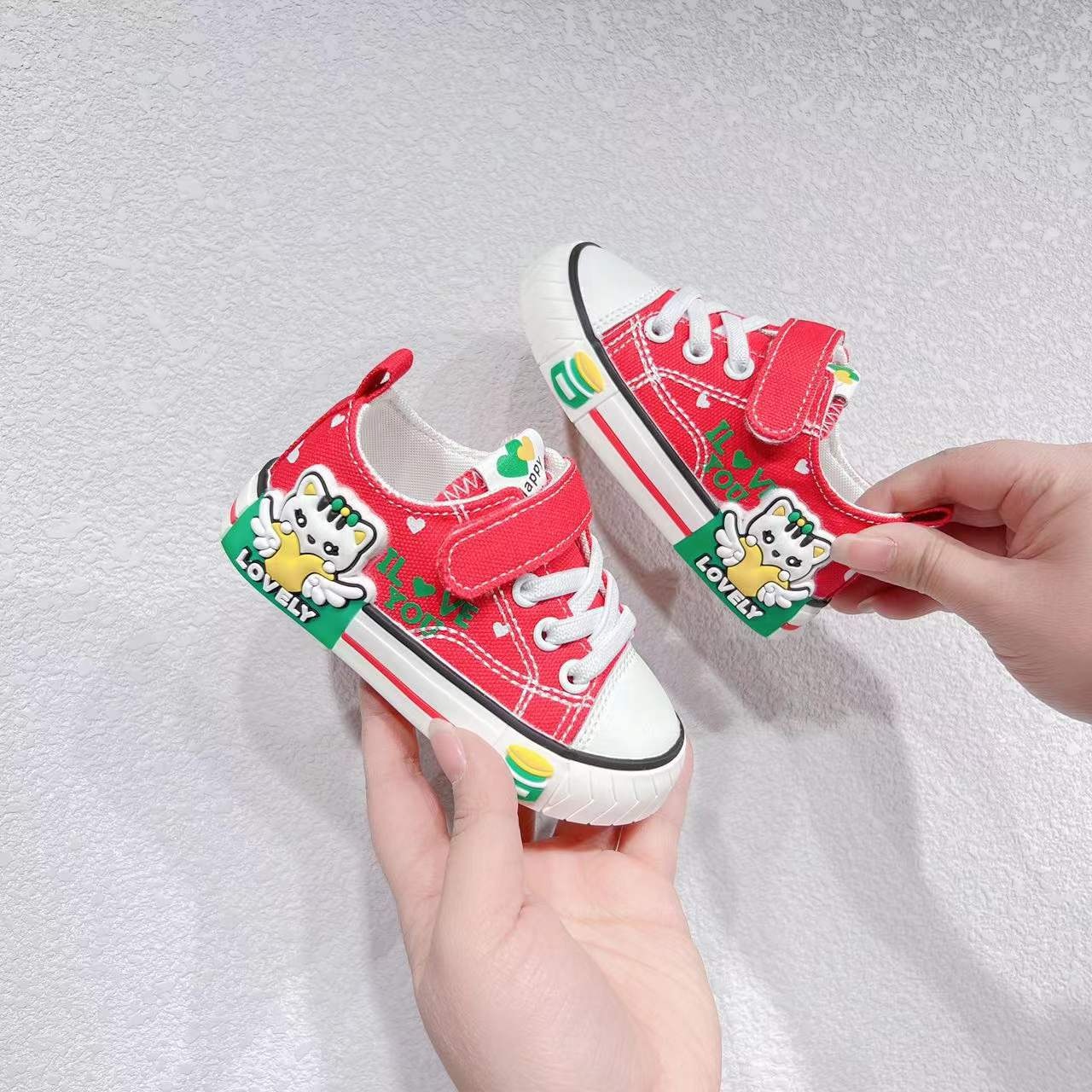 Girls Canvas Shoes Spring And Autumn Baby Shoes Soft Sole Cartoon Velcro Korean Version Children's Cloth Shoes Toddler Shoes