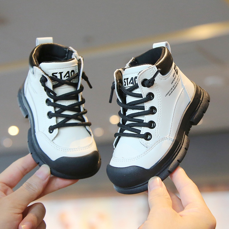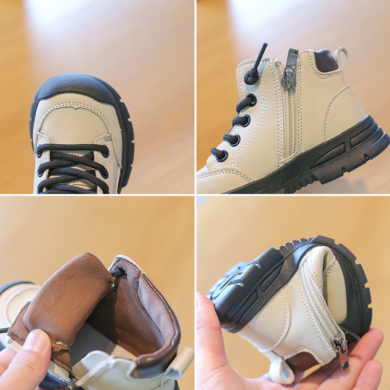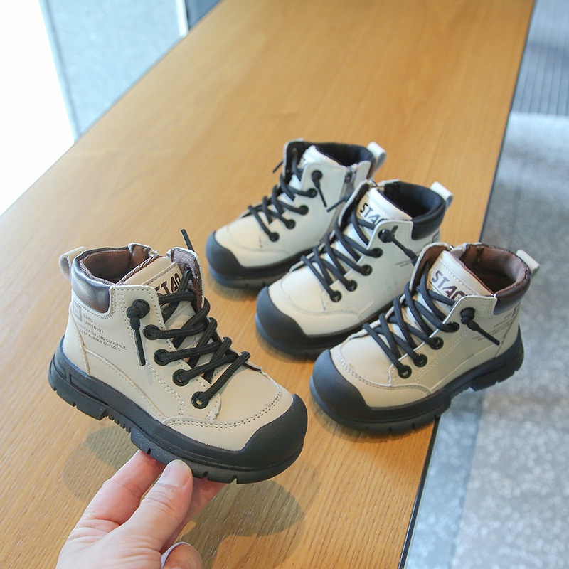 Children's Martin Boots Autumn And Winter Boys'Genuine Leather Short Boots American Style Girls1 To4 Work Boots Anti-kick Soft Sole