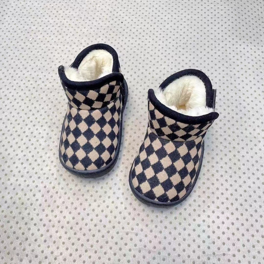 Maibu Bear Baby Cotton Shoes Children's Nubuck Leather Snow Boots Warm Baby Toddler Shoes Winter Boys'Short Boots