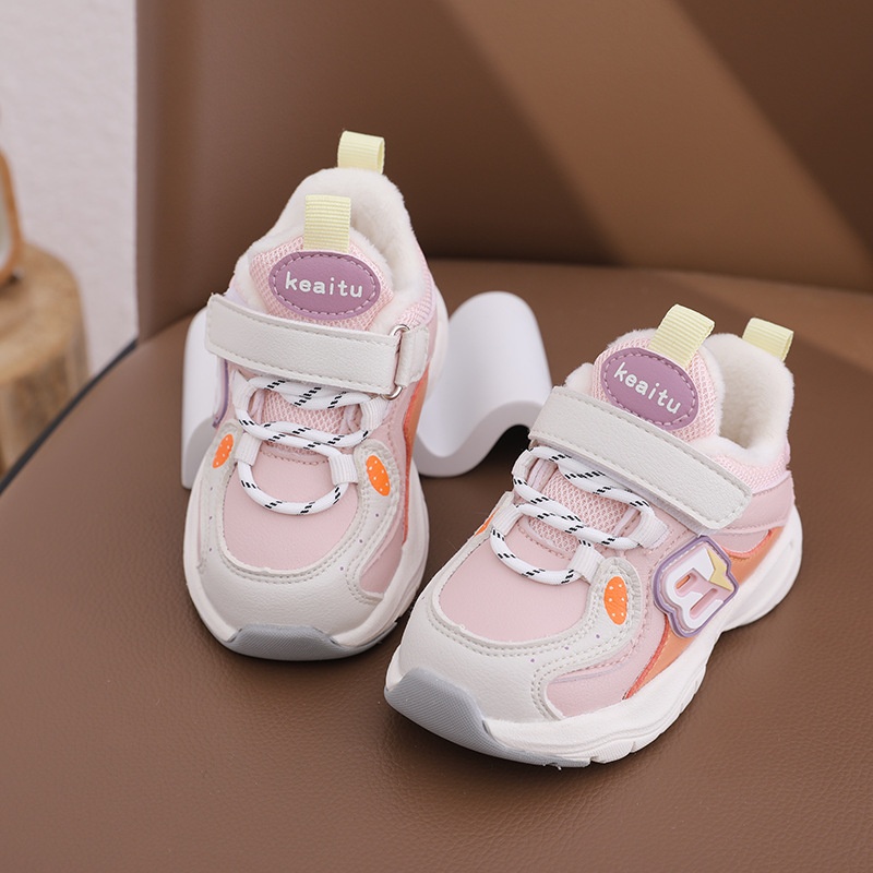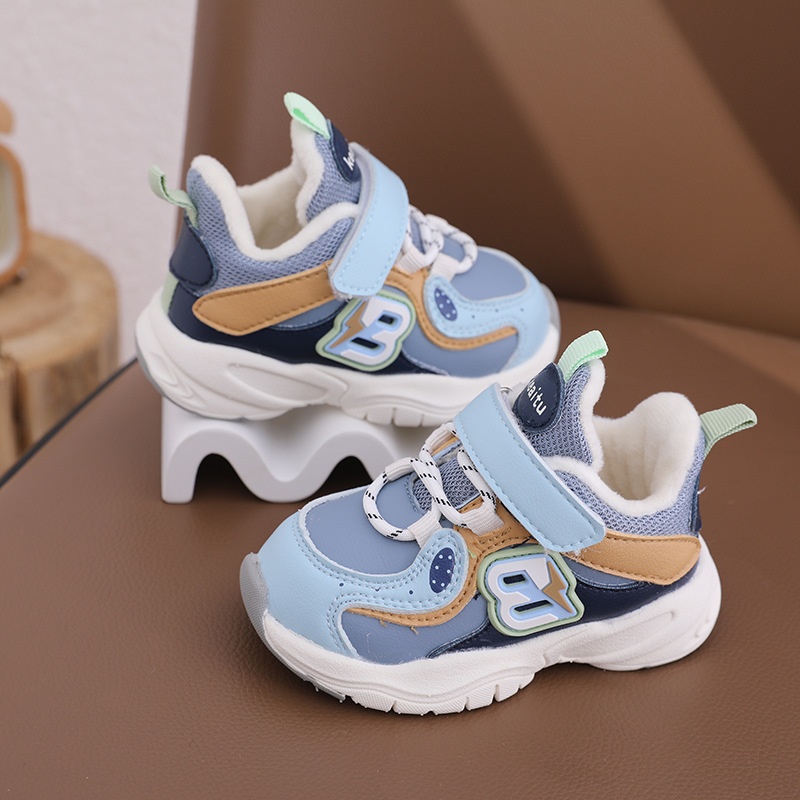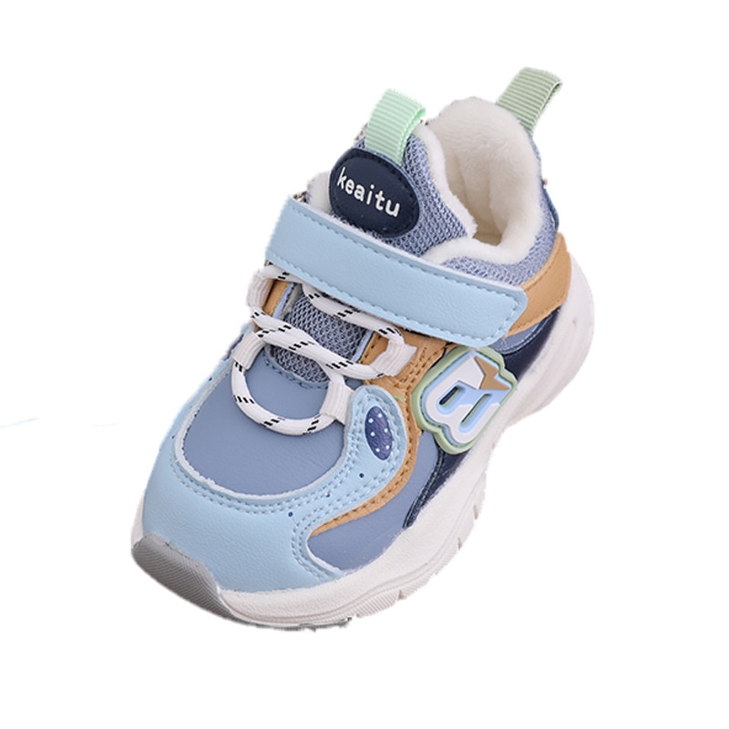 Autumn SGSAnti-drop Low-top Korean Version Of Microfiber Leather Cotton Bottom Graffiti Blue Breathable Toddler Shoes