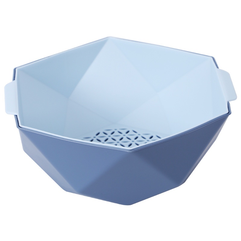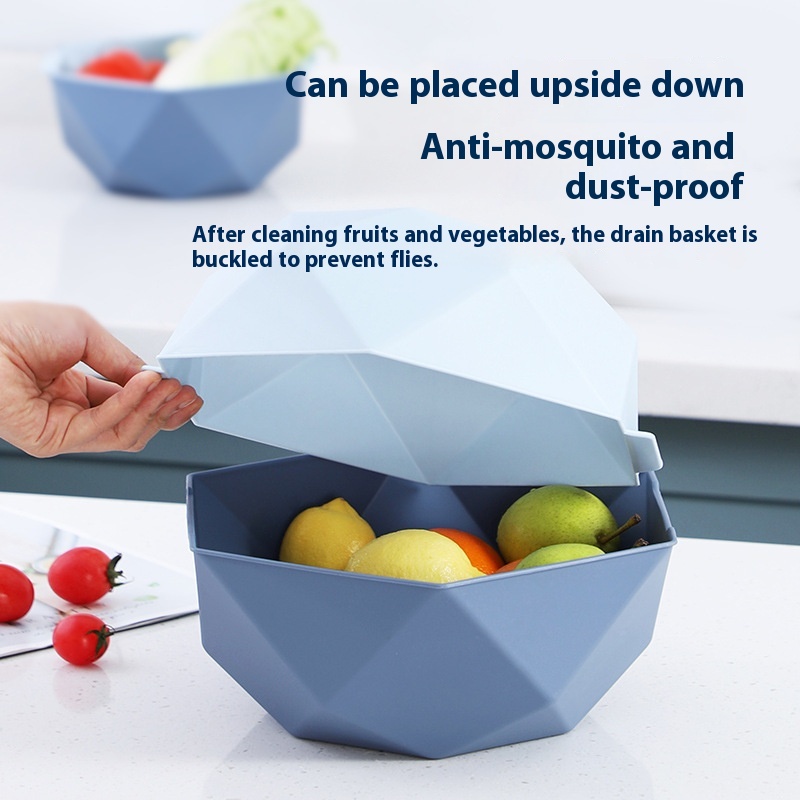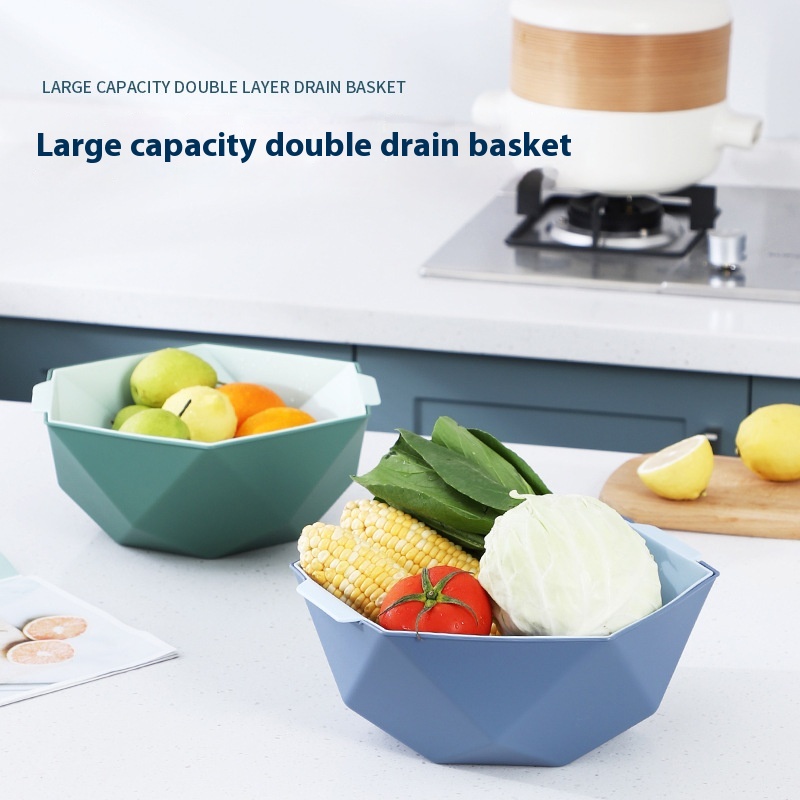 Haixing Household Fruit And Vegetable Contrast Color Washing Basket Kitchen Fruit And Vegetable Storage Basket With Lid Double Layer Drain Basket