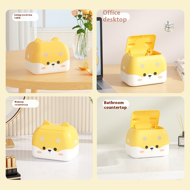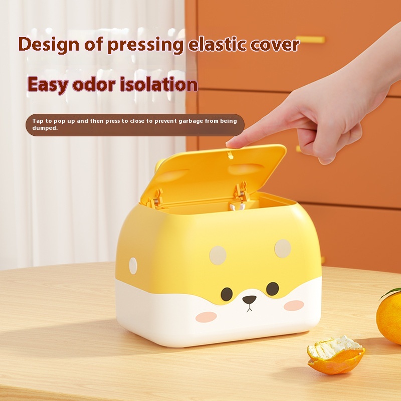 Double-layer Push-type Desktop Trash Can With Lid Small Wastebasket Cartoon Cute Storage Box Mini Trash Can