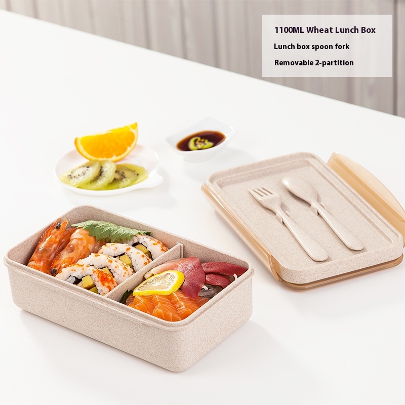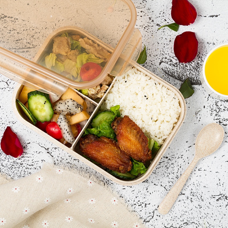 AISDEWheat Fiber Compartment Lunch Box Microwave Lunch Box With Spoon Creative Student Tableware Lunch Box
