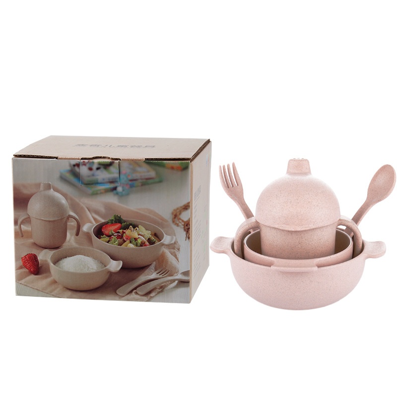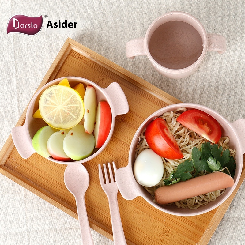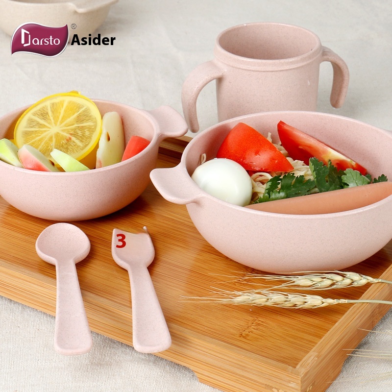 AISDEWheat Straw Children's Tableware Food Grade Baby Food Bowl Cup Fork Spoon Set Gift