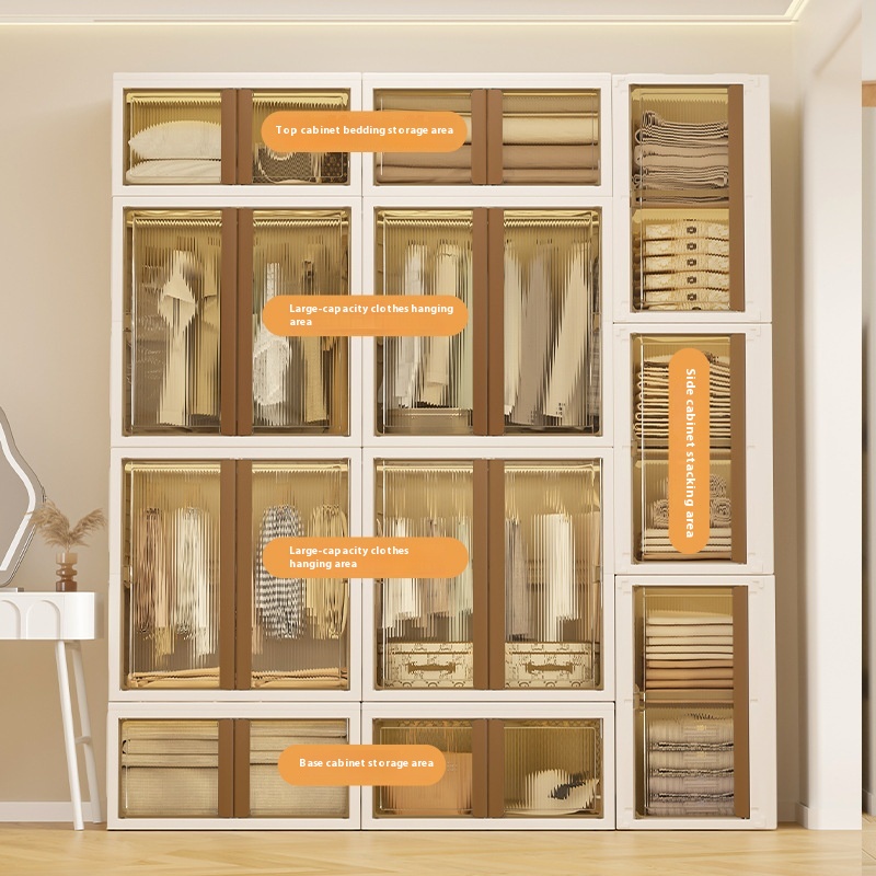 Light Luxury Floor-standing Plastic Hanging Wardrobe Household Clothes Sundries Storage Locker Large Capacity Foldable Simple Wardrobe