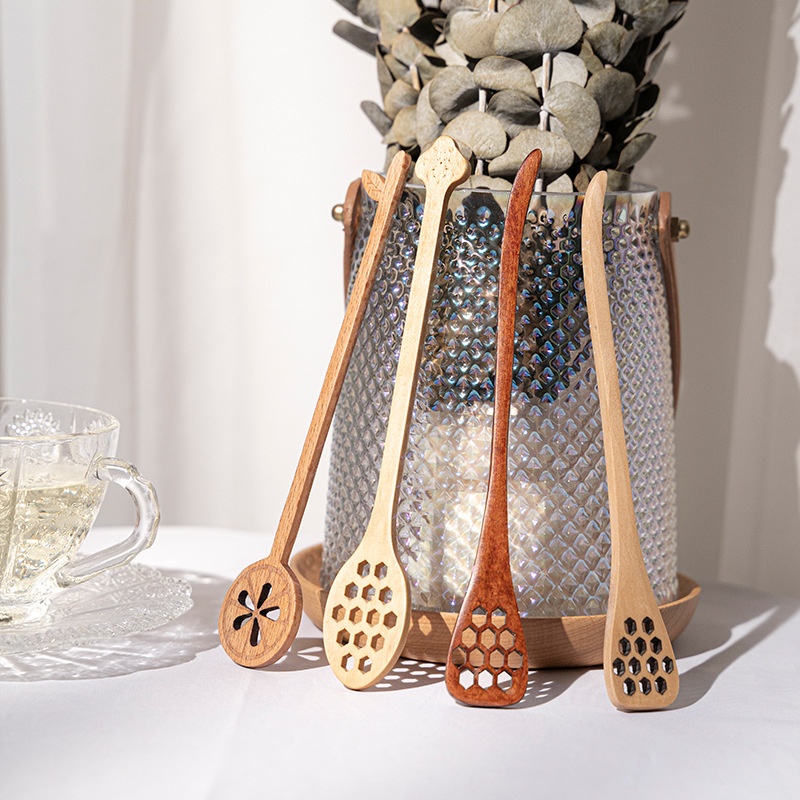 Creative Honey Stirring Stick Long Handle Coffee Milk Stirring Spoon Dessert Small Wooden Spoon Anti-scalding Household Wooden Stirring Stick
