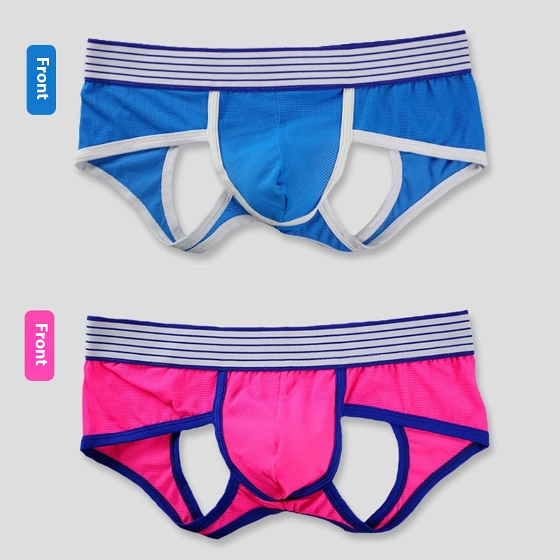 Men's Mesh Breathable Sexy Thongs For Boys Low Waist Back Hollow Double Thongs No Need To Take Off The Waistband Underpants