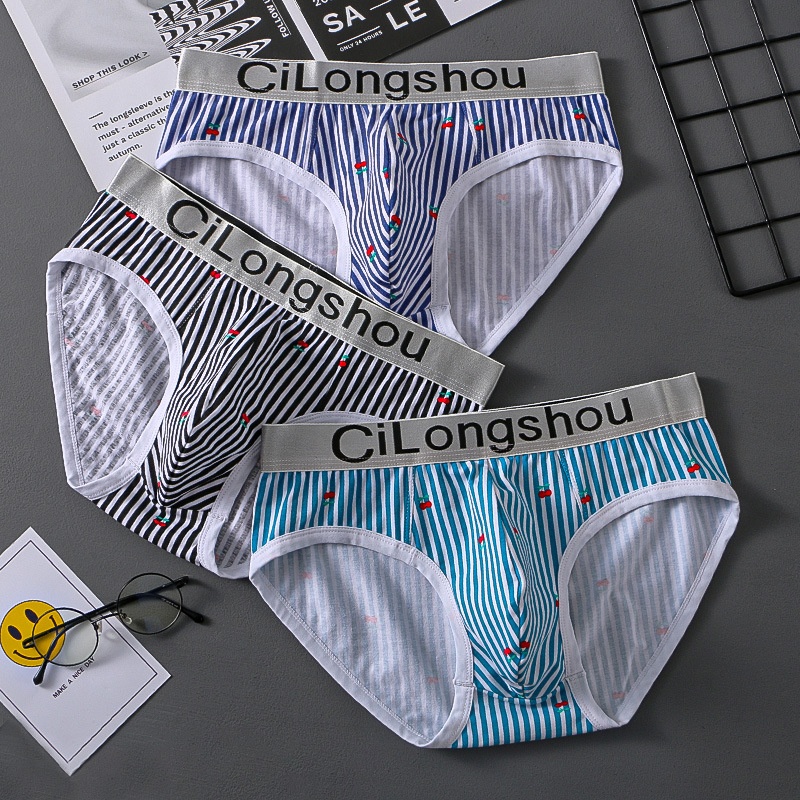 Men's Underwear Pure Cotton Breathable Briefs Boys'Mid-waist Striped Shorts Youth Students Personalized Comfortable Pants