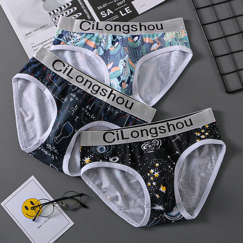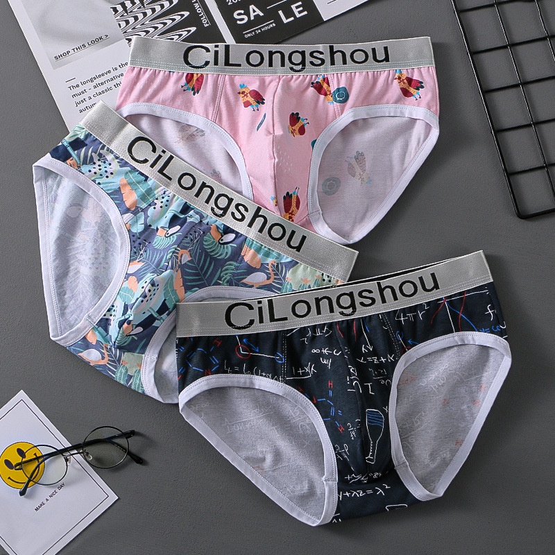 Men's Underwear Pure Cotton Breathable Printed Briefs Youth Personality Comfortable Shorts U-convex Fashionable Large Size Pants