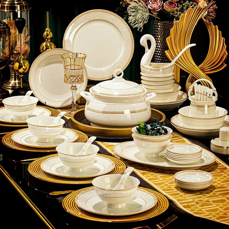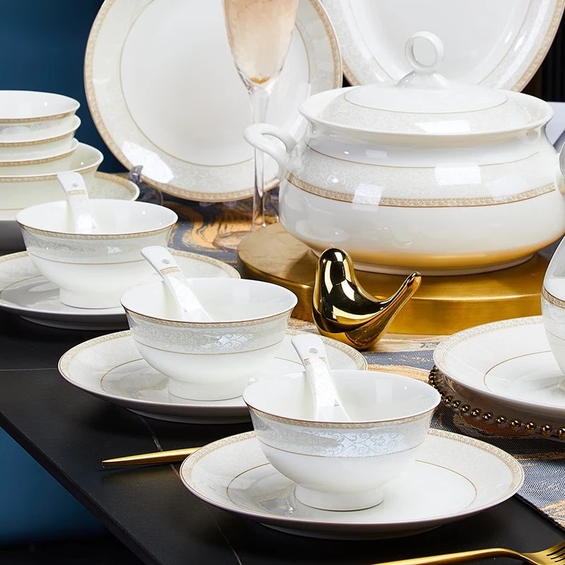 Bowl And Plate Set Gift Box European Style High-end Bone Porcelain Bowl And Plate Combination Modern Light Luxury High-value Tableware Set