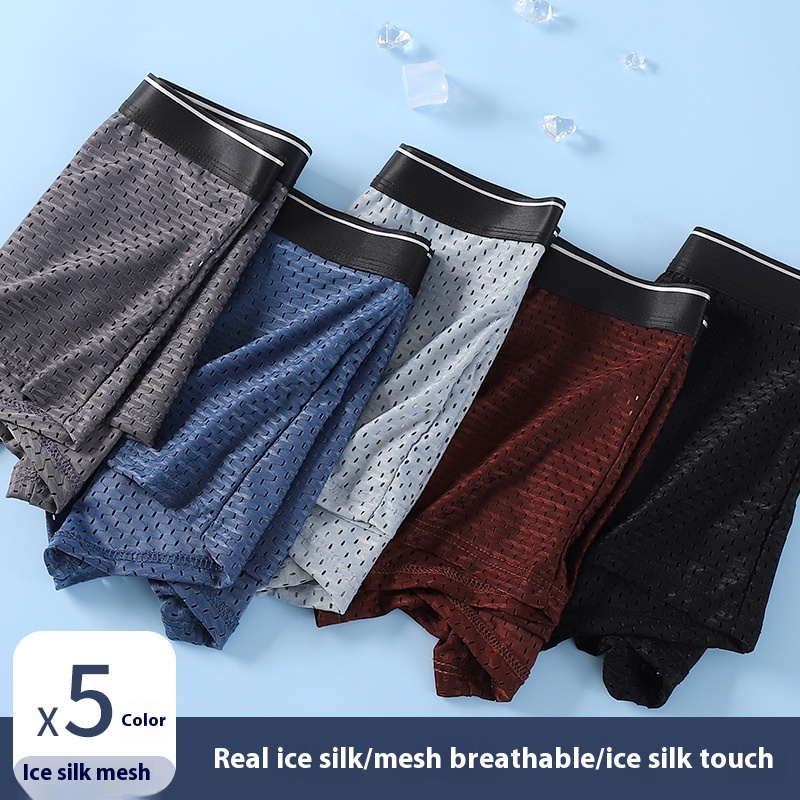 Ice Silk Underwear Men's Flat Angle Full Mesh Large Size Men's Underwear Pure Cotton Crotch Mid-waist Flat Angle Ice Pants