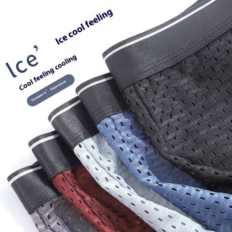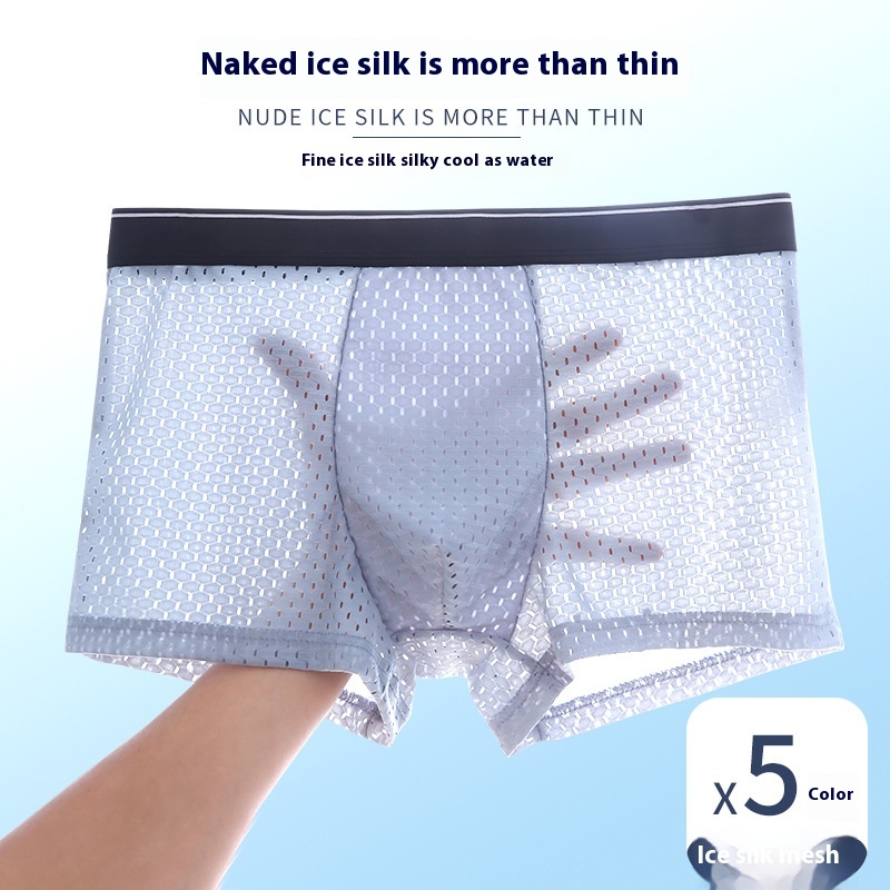 Full Mesh Men's Underwear Ice Silk Cotton Men's Underwear Summer Breathable Hollow Mesh Boxers