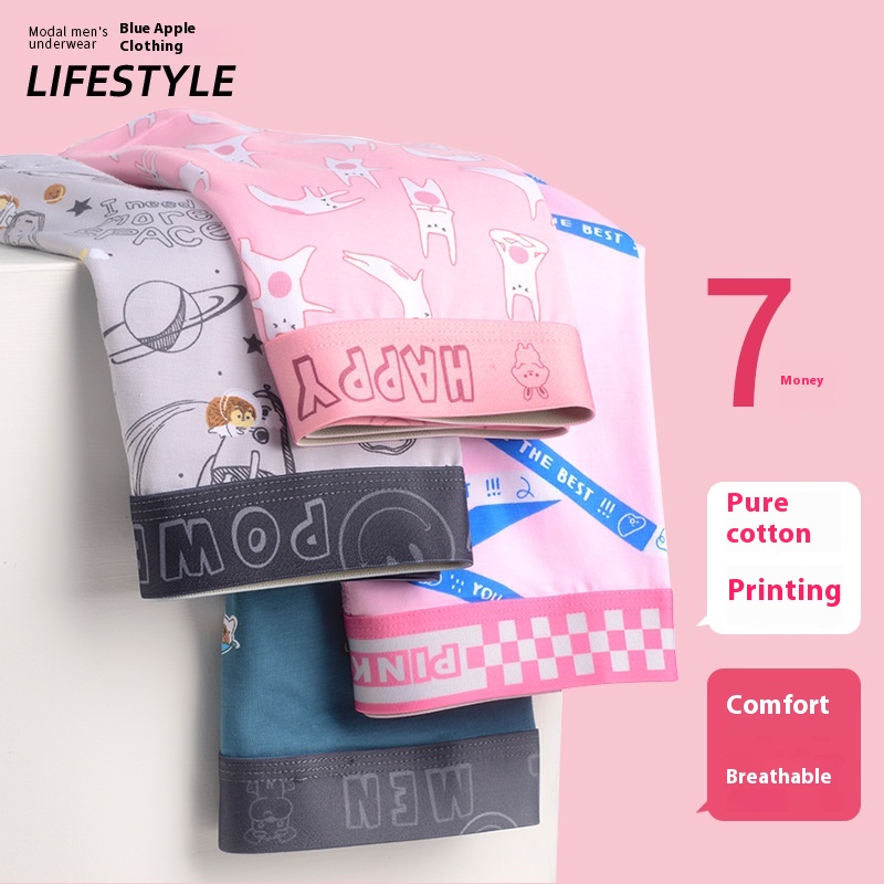 Cotton Pink Printed Men's Underwear,Macho Personality Boxer Briefs,Comfortable And Breathable Teenagers'Boxer Briefs