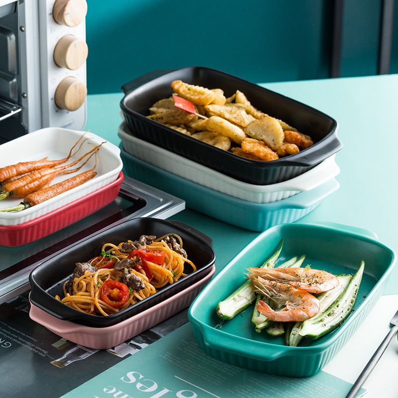 High-value Double-ear Ceramic Baking Tray Household Vegetable Tray Baking Tray Hotel Cheese Baked Rice Tray Nordic Tableware