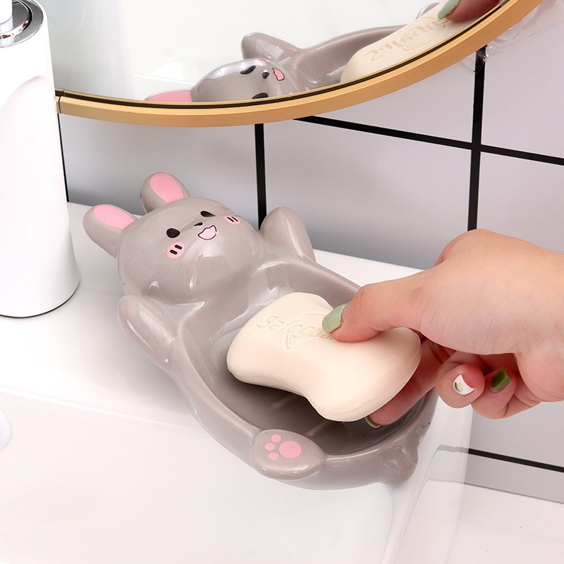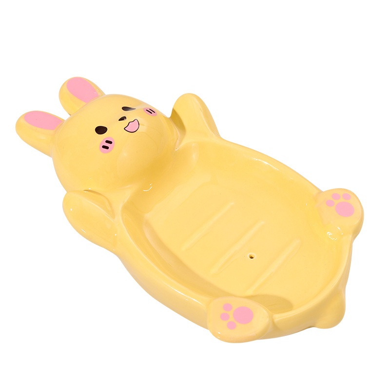High-value Cartoon Ceramic Soap Box Cute Rabbit Soap Rack Bathroom Drain Soap Box Home Storage Box