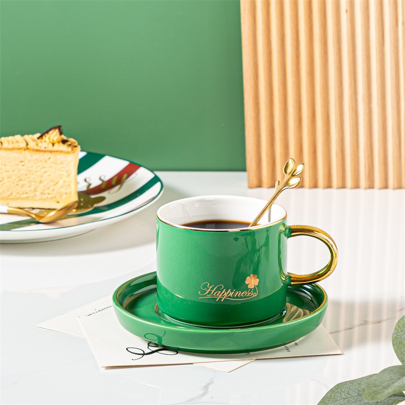 Nordic Light Luxury Four-leaf Clover Coffee Cup And Saucer Home Breakfast Milk Cup Office Coffee Cup Creative Mug