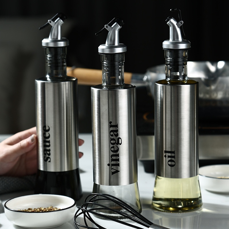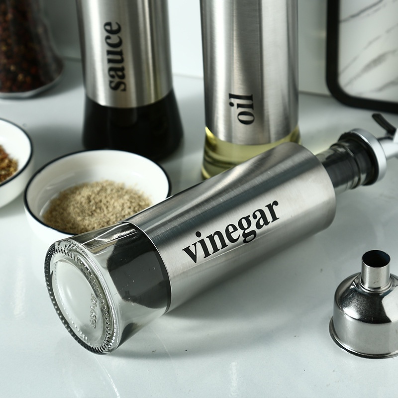 Creative Stainless Steel Glass Seasoning Bottle Home Kitchen Seasoning Oil Bottle Set Soy Sauce Bottle Glass Seasoning Bottle