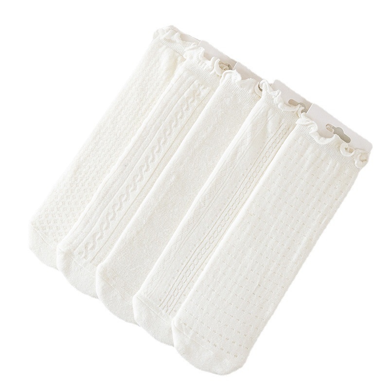 Summer Lace Socks Women Thin Mesh Solid Color Women's Socks Wood Ear Edge White Socks Princess Sweet Socks