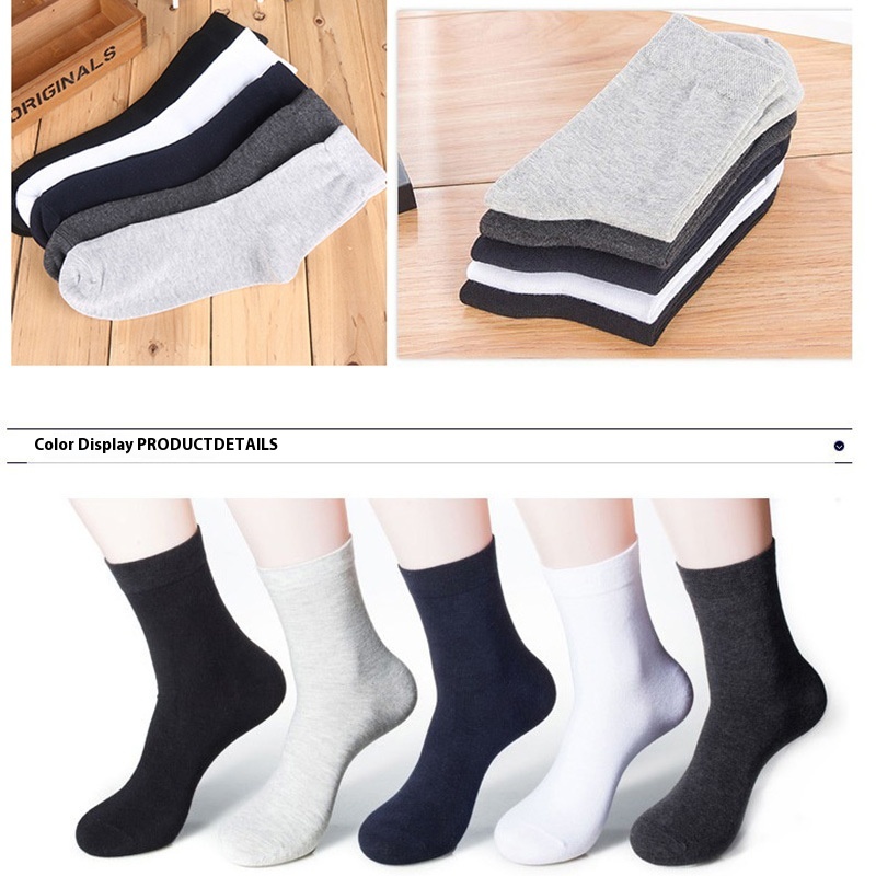 Solid Color Cotton Socks For Men Business Mid-tube Socks Wicking Sweat Sports Mid-waist Socks