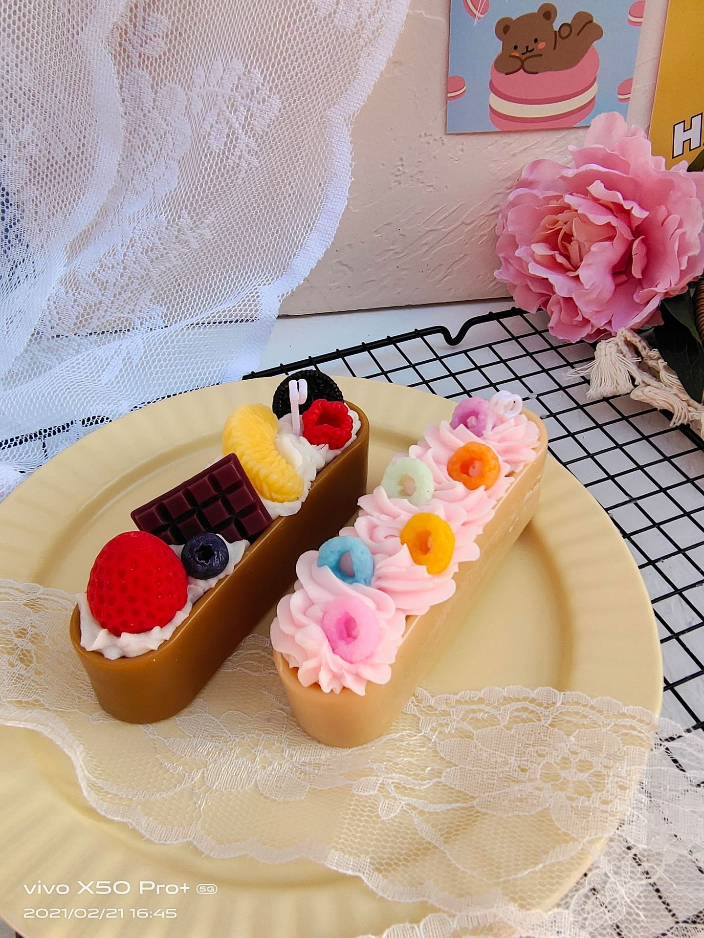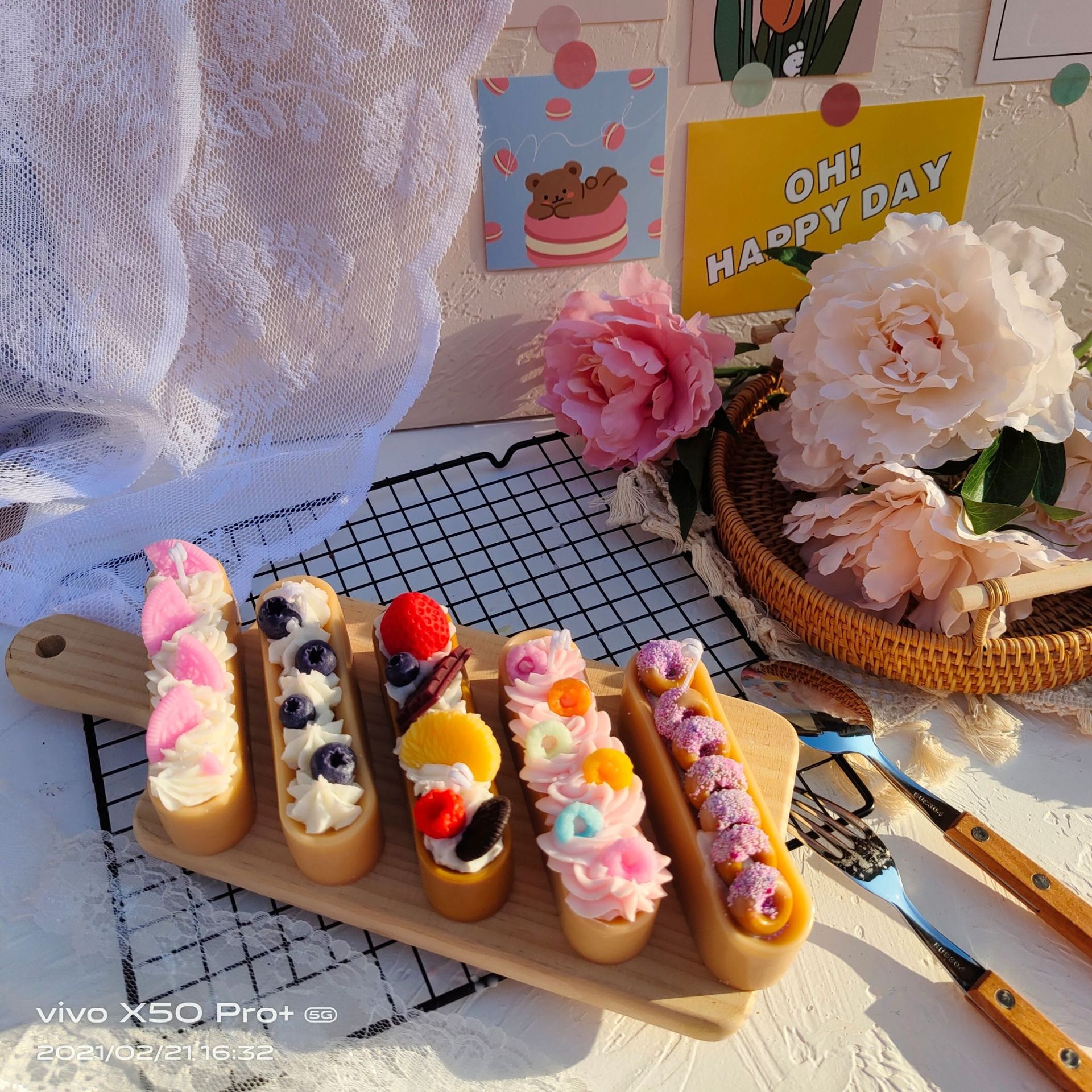 Lightning Puff Cream Chocolate Fruit Aromatherapy Candle Shooting Props Birthday Gift Pink Souvenir Dessert