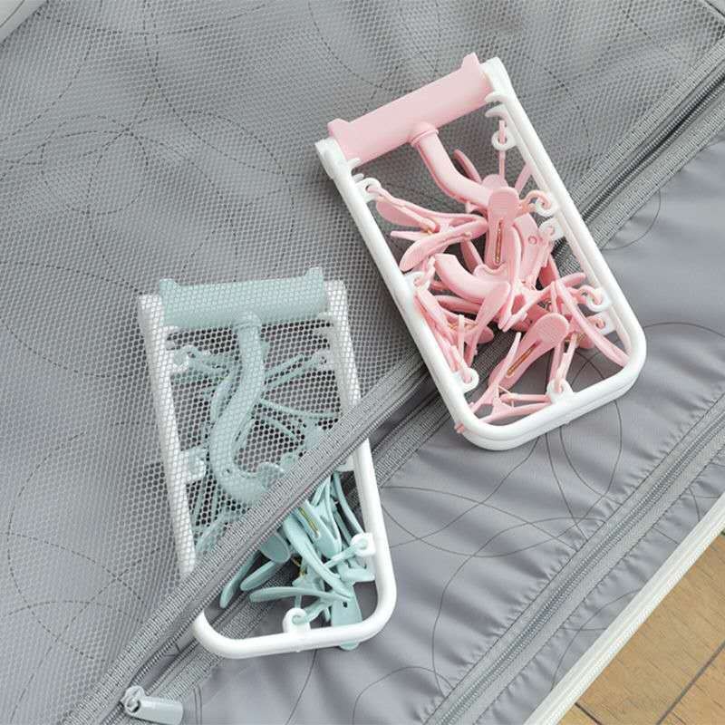 Clothes Drying Rack Folding Hanger12 Clips Socks Drying Rack Household Square Windproof Dormitory Student Children Adult Rack Hanging