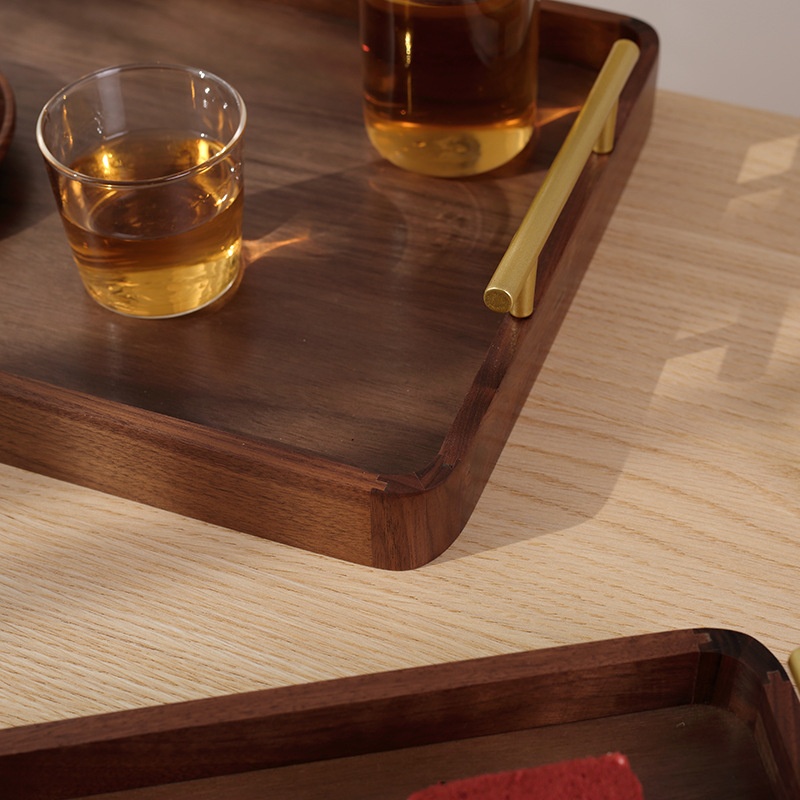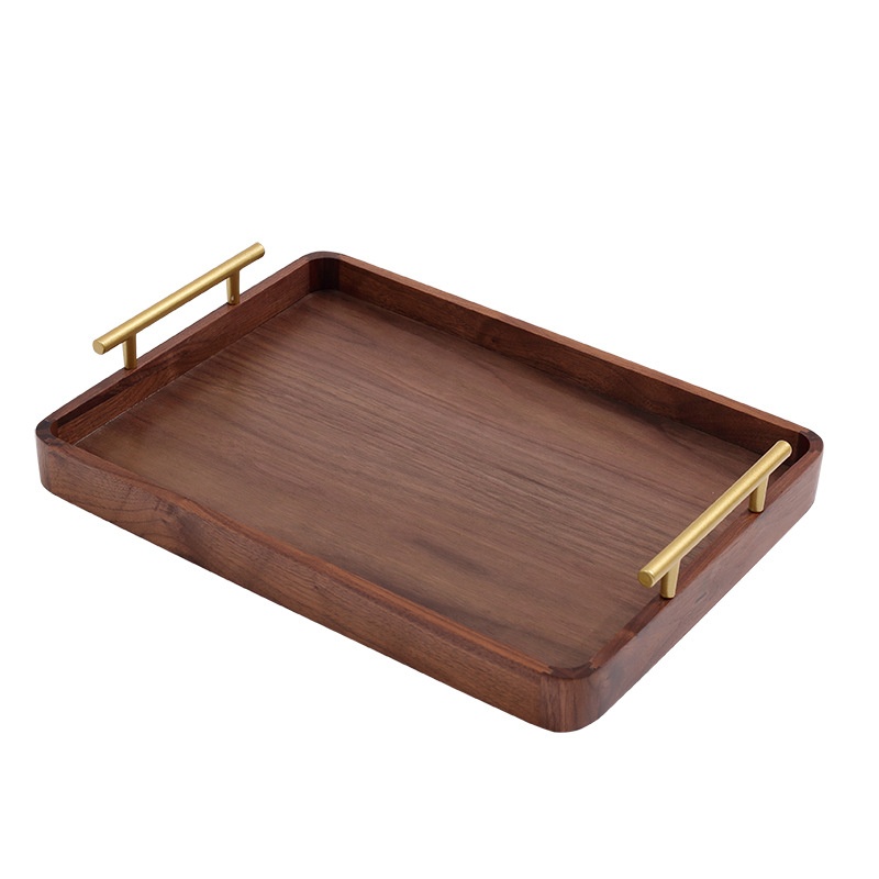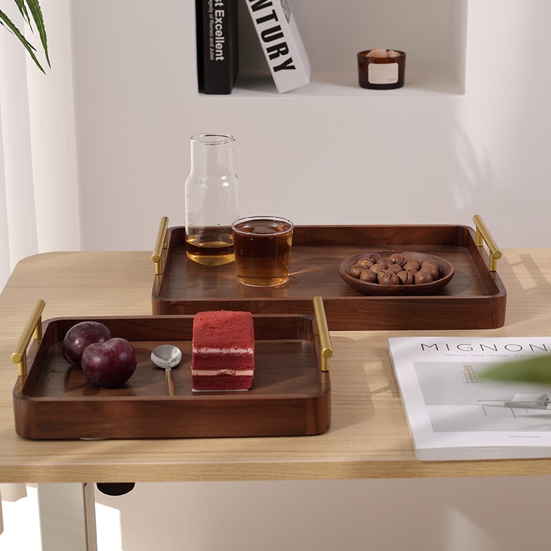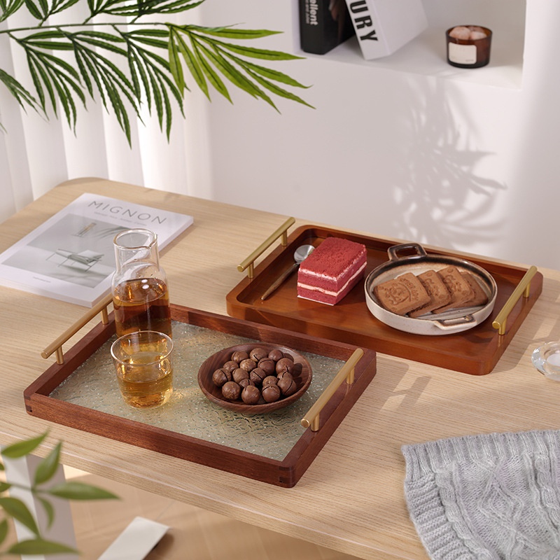 Walnut Begonia Flower Glass Tray Rectangular Metal Handle Dessert Tray Tea Cup Tea Set Tray Tea Tray