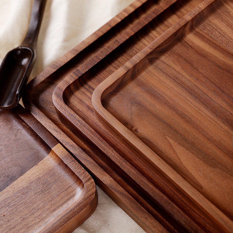 Black Walnut Tray Household Japanese Wooden Square Dinner Tray Tea Cup Wooden Tray Western Coffee Tray