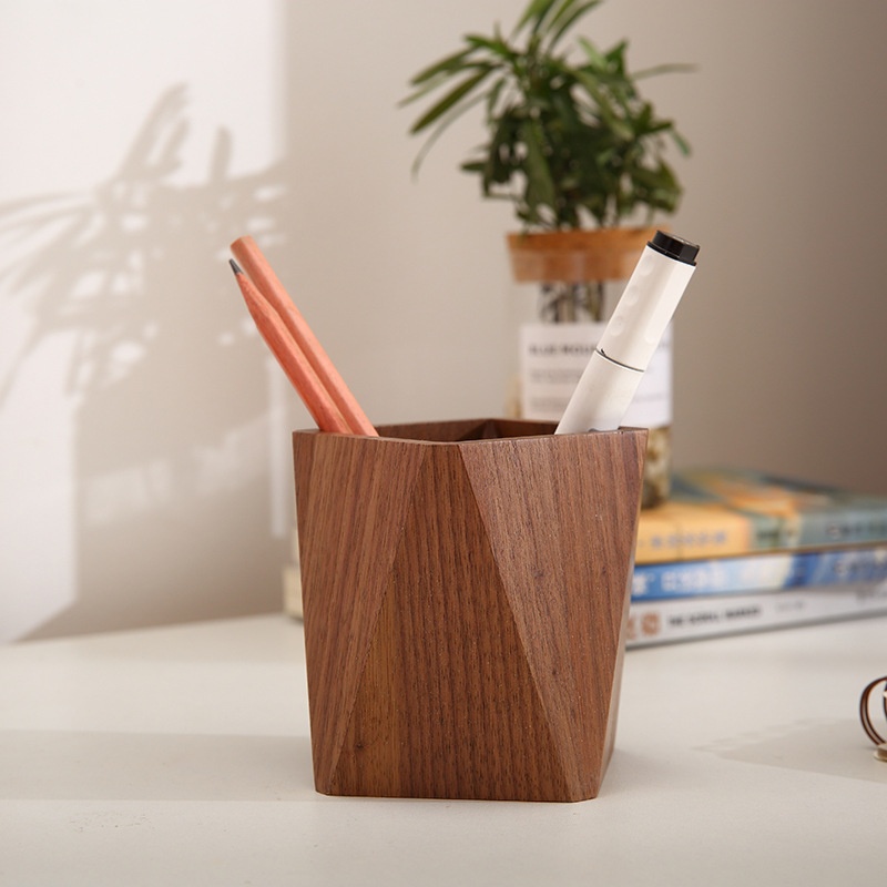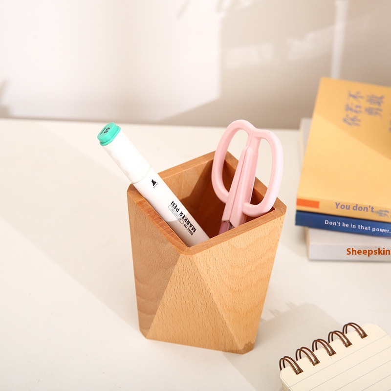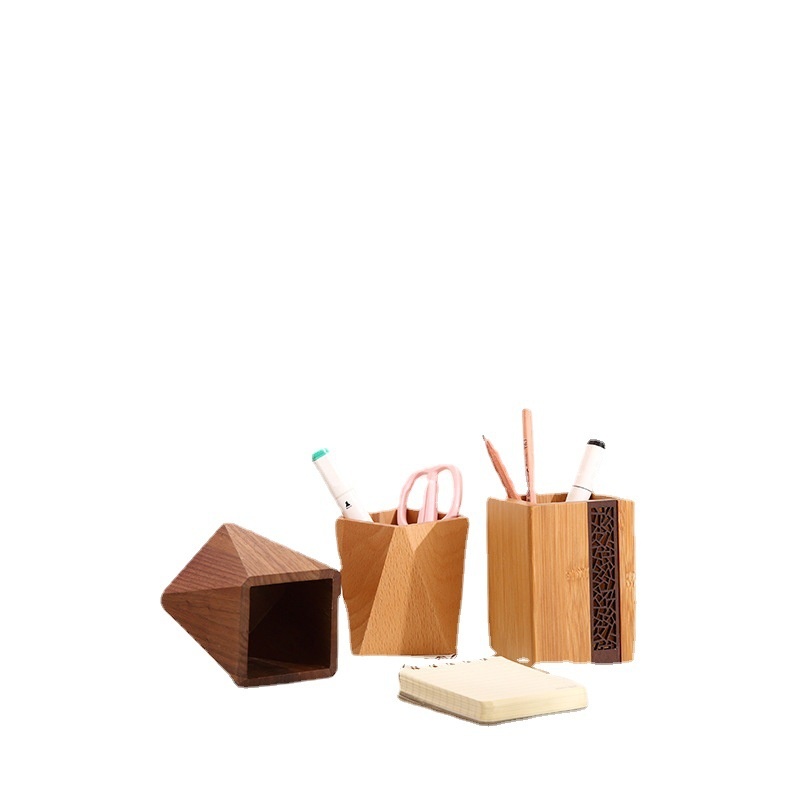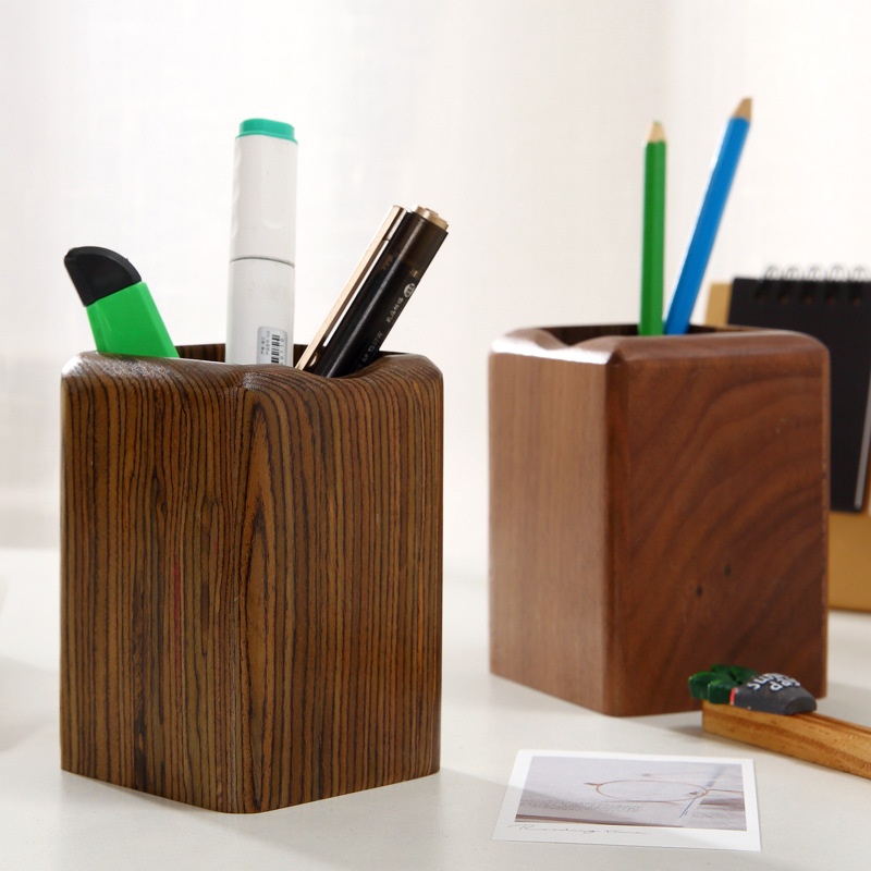 Wooden Stationery Pen Holder Creative Office Supplies Beech Wood Pencil Case Ornaments Square Wooden Desktop Storage Pen Holder