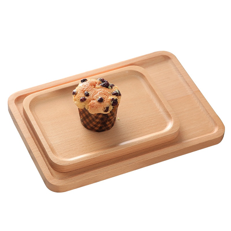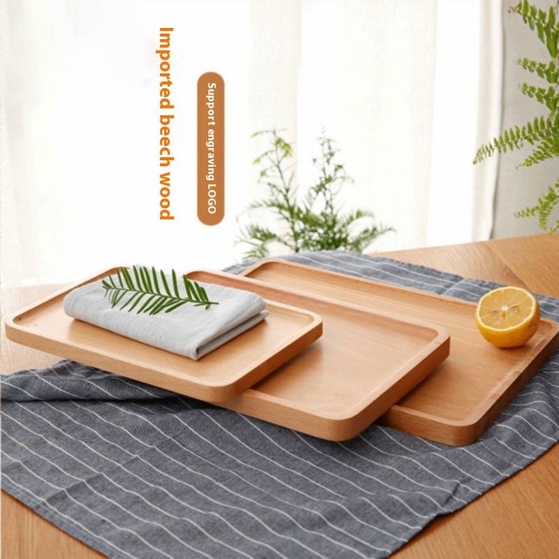 Beech Wood Tray Rectangular Japanese Style Household Water Cup Tea Tray Dinner Tray Wooden Fruit Cake Pizza Plate