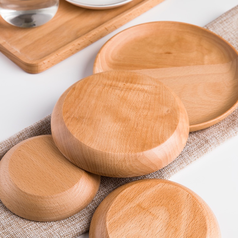 Japanese Black Walnut Tray Round Dessert Tray Wooden Plate Beech Wood Plate Sushi Plate Round Tea Plate Fruit Plate Snack Plate