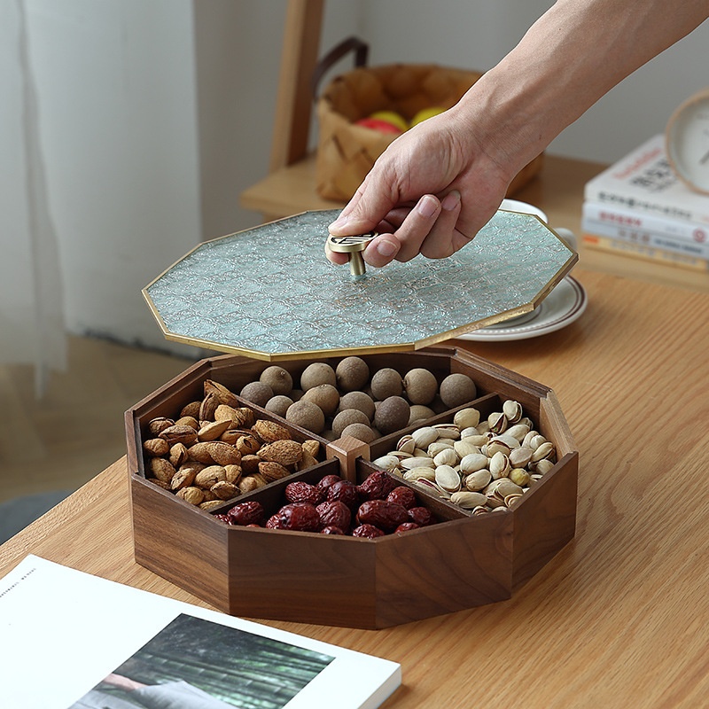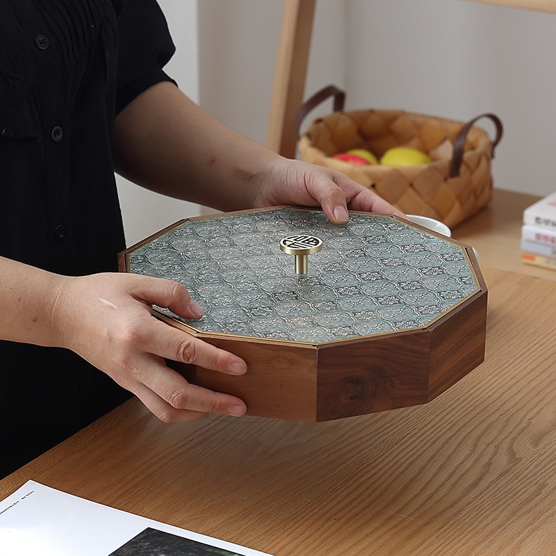 Dried Fruit Plate Chinese Style High-end Living Room Coffee Table Home Nuts Snacks Light Luxury Display Solid Wood Candy Storage Box