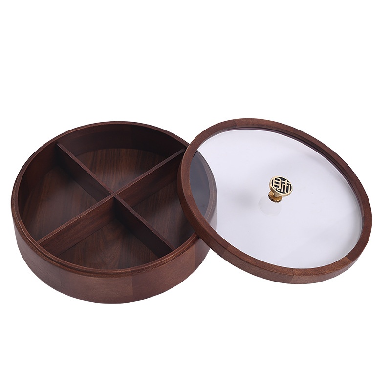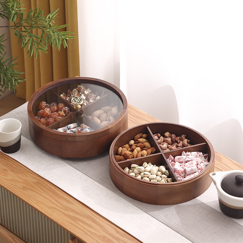 Year's Dried Fruit Plate Candy Box Household Wooden Living Room Double-layer Rotating Fruit Plate Year's Snacks Compartment Storage Box