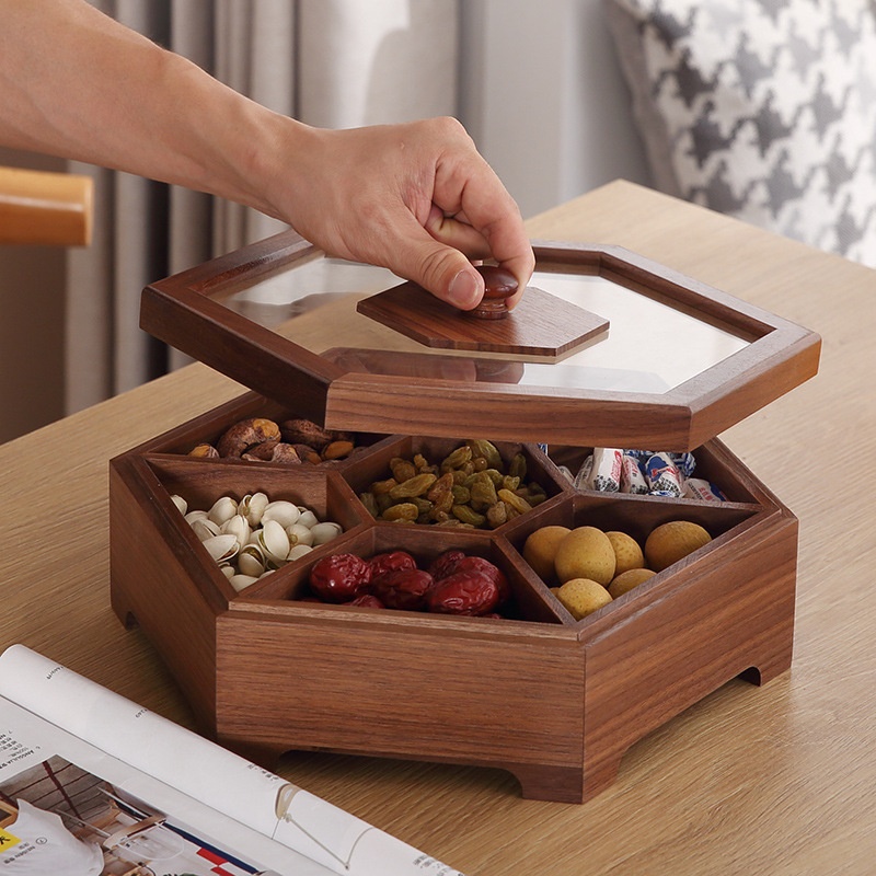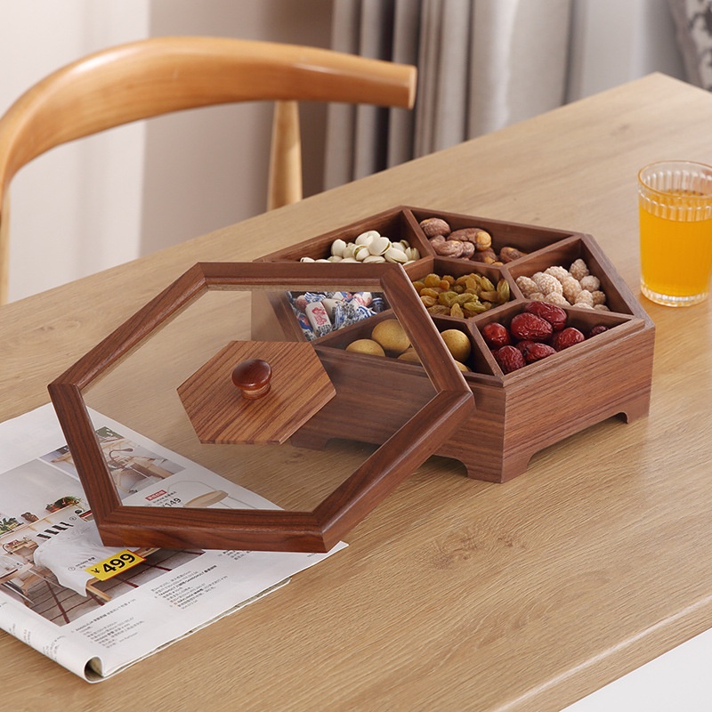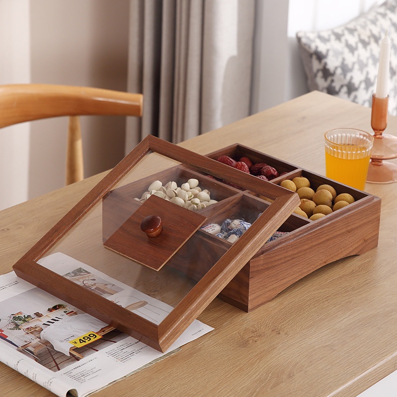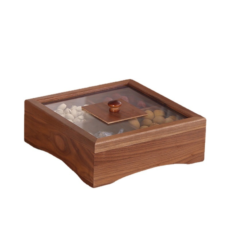 Black Walnut Dried Fruit Plate High-end Atmospheric Snack Plate Creative Living Room Coffee Table Partitioned Nut Plate Home Candy Box