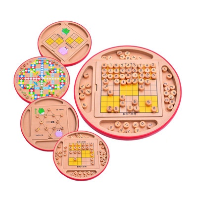 Youdele Children's Five-in-one Chess Toy Sudoku Chess Four-square Nine-square Wooden Flying Chess
