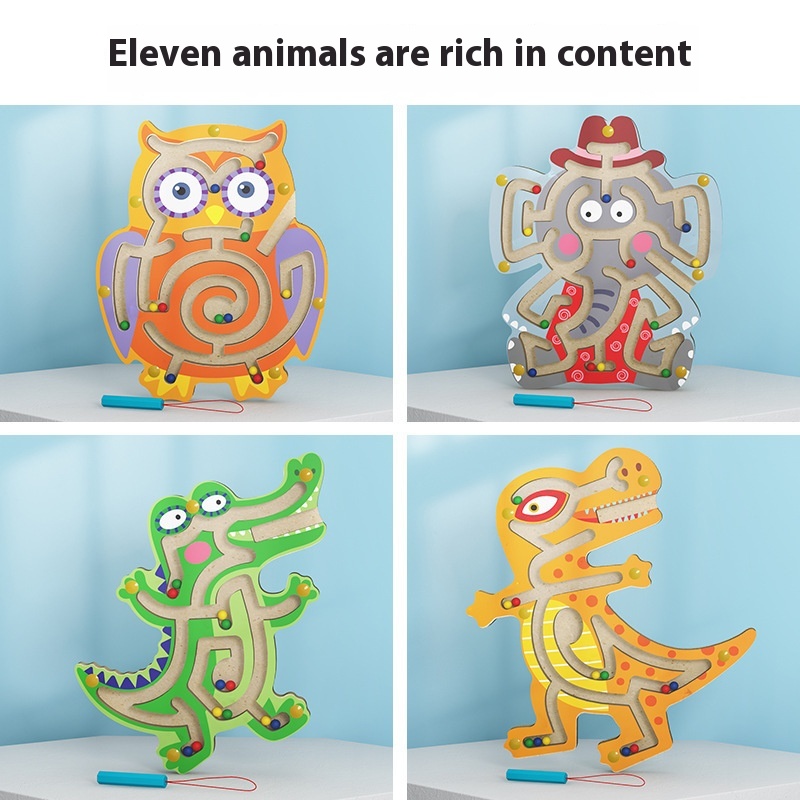 Magnetic Pen Ball Maze0.2 Animal Dinosaur Wooden Track Children's Educational Toys