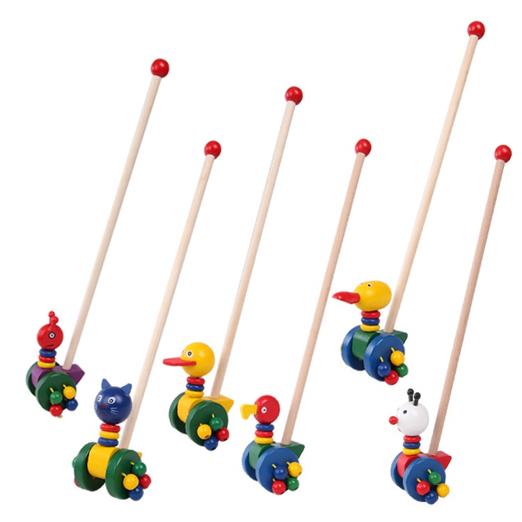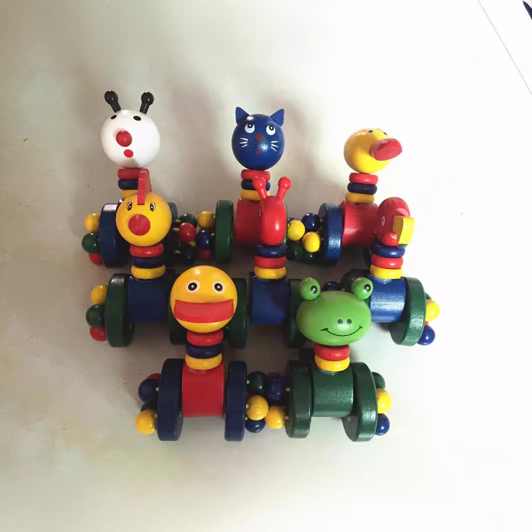 Direct Sale Children's Early Education Educational Toys Baby Duck Cartoon Animal Wooden Trolley Toy