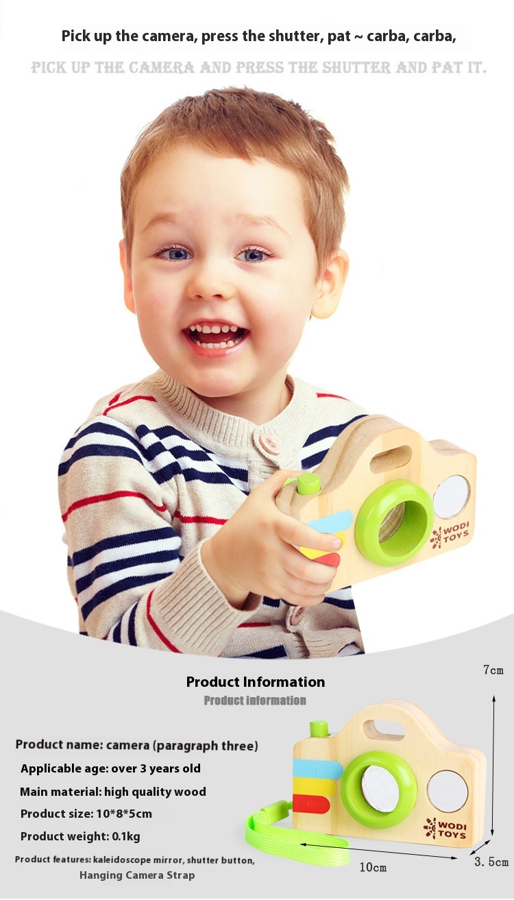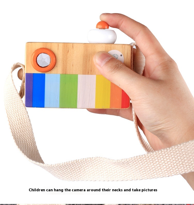 Wooden Cartoon SLRCamera Style Kaleidoscope Prism With Ever-changing Bee Eye Effect Children's Fun Educational Toy