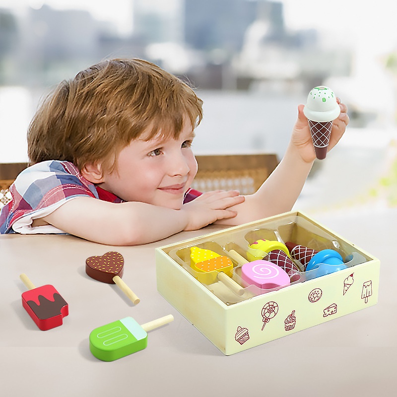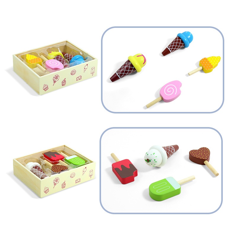 Wooden Box Fruit And Vegetable Cut To See Wooden Simulation Ice Cream Infant Early Education Educational Kitchen Toys