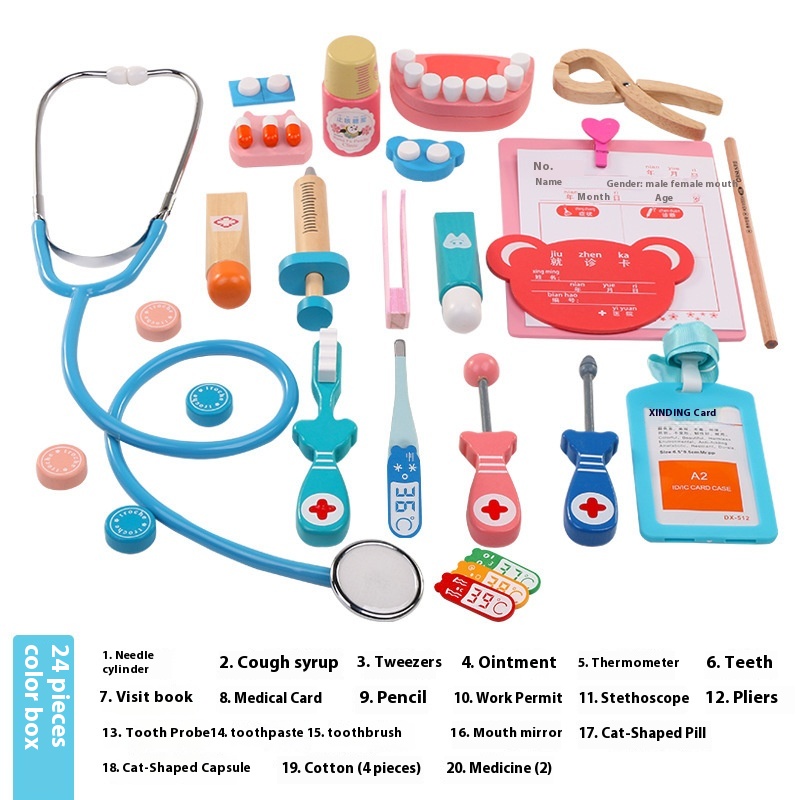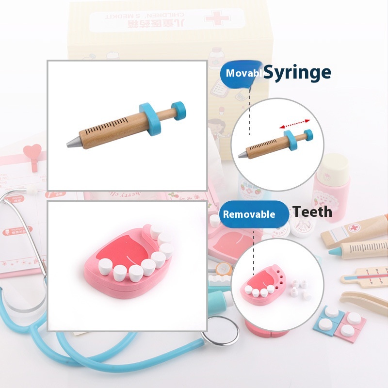 Pretend Doctor Toy Set Wooden Children's Dental Simulation Boy And Girl Nurse Doctor Stethoscope