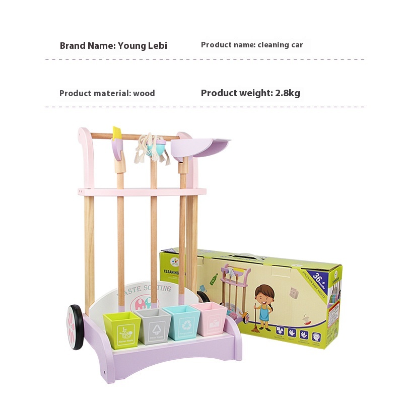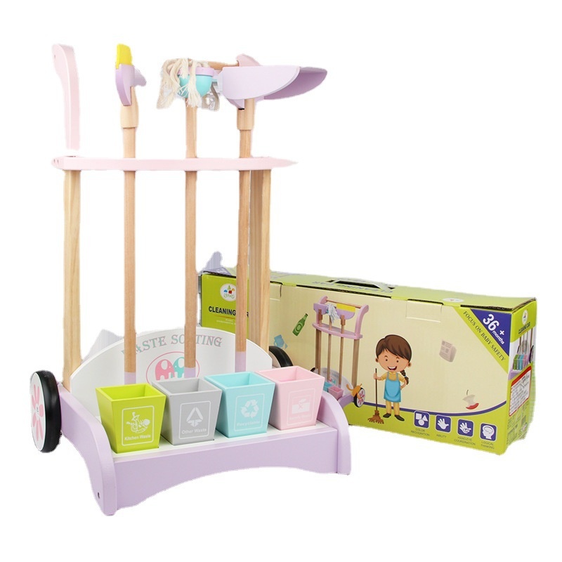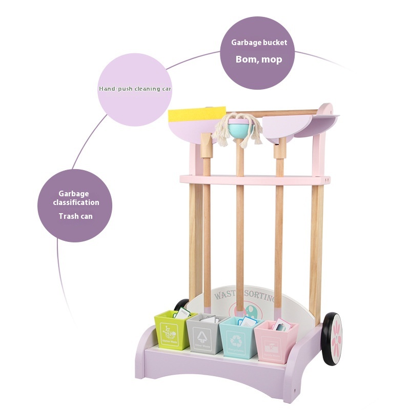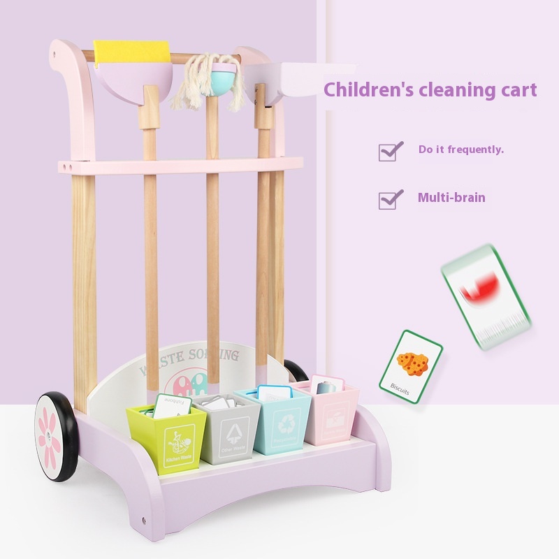 Children's Multifunctional Mop And Dustpan Garbage Classification Sweeping Cleaning Cart Set Simulation House Wooden Toys