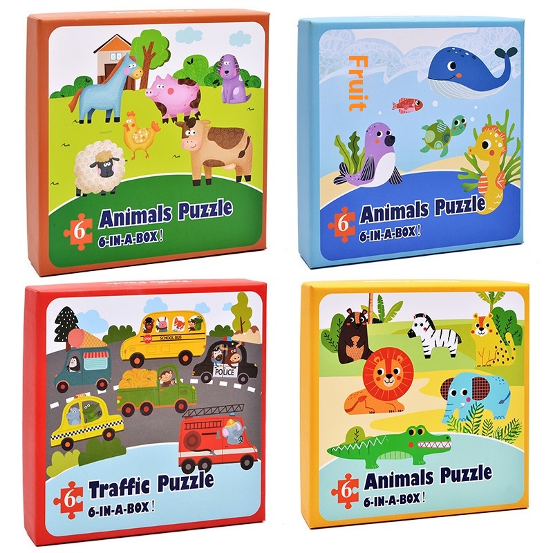Six-in-one Farm Forest Ocean Animal Transportation Puzzle Board Wooden3-6 Years Old Educational Children's Toys
