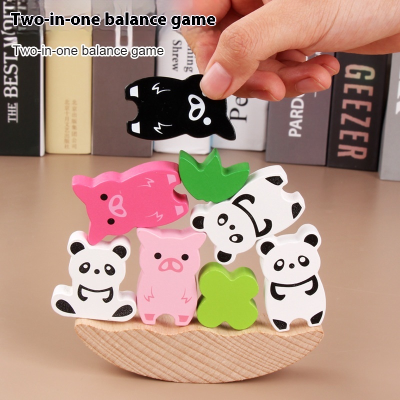Wodi2 In1 Balance Game Wooden Animal Building Blocks Stacking Educational Toys
